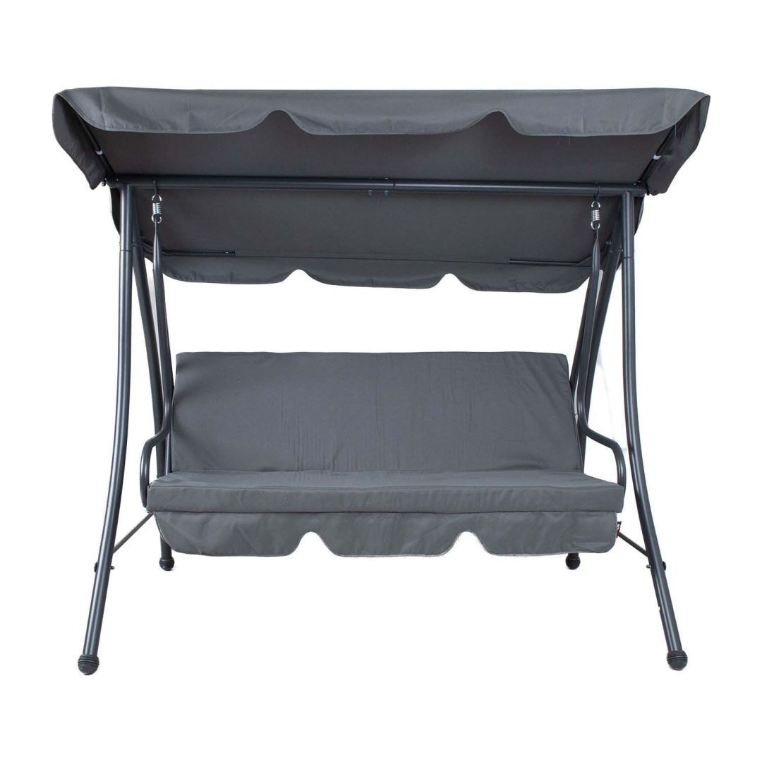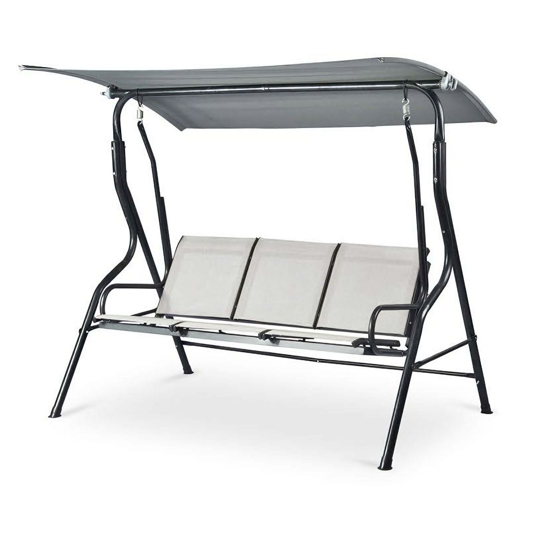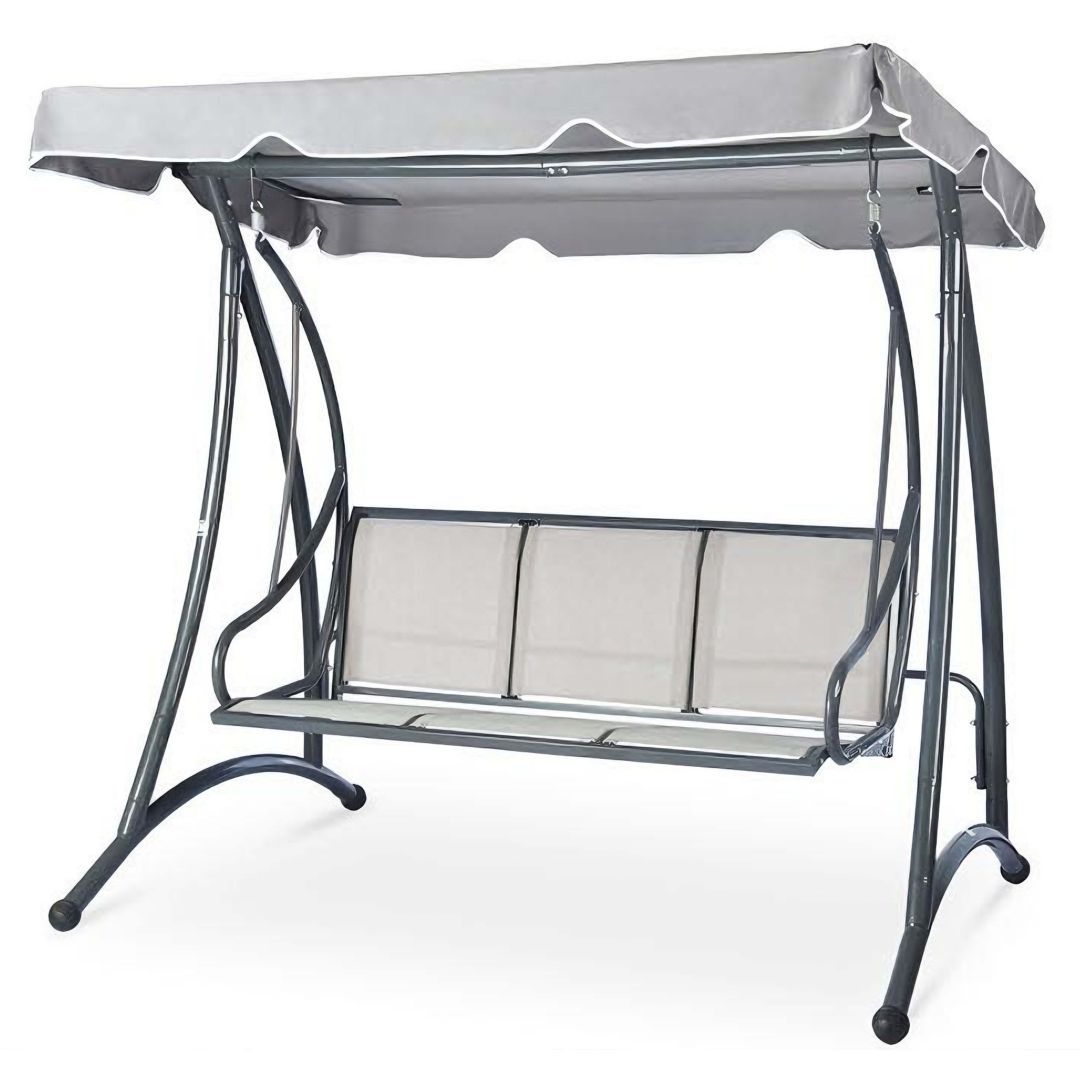 Aiakiik MONA 3-kohaline 195x117xH168cm, hall. Kiige tugev ja stabiilne terasraam on viimistletud halli pulbervärviga. Seljatoe saab soovi korral alla lasta ja fikseerida raami külge. Istme laius on 158cm, istme kõrgus 60cm, istme sügavus 50cm, seljatoe kõrgus 50cm. Raami torude mõõdud D48/32/28/16mm. Kiige katuseraam on kaetud halli polüesterkangaga (180g/m²). Katuse kaldenurk on reguleeritav. Istmepõhi on valmistatud polüesterkangast. Eemaldatavad istmepadjad on kaetud halli oxford kangaga. Padja mõõdud on 158x50+50x7cm. Kaalupiirang 150kg. Toode on muutlikes ilmastikutingimustes hästi vastupidav ja lihtsalt hooldatav. Kiige eluea pikendamiseks soovitame kasutada välimööbli katteid. HOIUSTAMINE: suvehooaja lõppedes soovitame aiamööblit hoiustada siseruumides. Puhastage ja kuivatage mööbel enne hoiule panekut. Kasutage hoiustamiseks kuiva ning hea ventilatsiooniga ruumi.