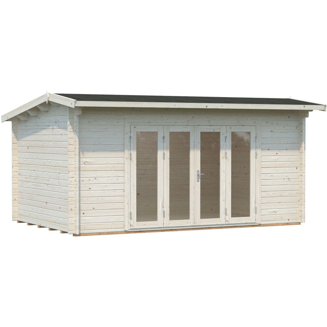 AIAMAJA PALMAKO LEA 14,2M² SLIDE PLUS GTIN: 4743142022191 Aiamajad_ Aiamaja Palmako Lea 14,2 m² Slide Plus.<br /><br><br><b>Tehnilised andmed:</b><br /><br>• Seina mõõdud: 450 × 330 cm<br /><br>• Palgi mõõdud: 470 × 350 cm<br /><br>• Põrandapind: 14,2 m²<br /><br>• Brutopind: 14,9 m²<br /><br>• Seina paksus: 44 mm<br /><br>• Seina kõrgus: 211 cm<br /><br>• Harja kõrgus: 244 cm<br /><br>• Katuse üleulatuvus: 50 cm<br /><br>• Katuse pindala: 19,2 m²<br /><br>• Katuse kalle: 4,0°<br /><br>• Katuse- ja põrandalauad: 19 mm, keele-soonega<br /><br>• Ukseava mõõdud: 172 × 185 cm<br /><br>• Maht: 31,6 m³<br /><br><br><b>Komplektis:</b><br /><br>• Liugukse komplekt<br /><br>• Topeltkarastatud klaasid<br /><br>• Silindrilukk<br /><br>• Tuuleliistud<br /><br>• Töödeldud vundamendiprussid<br /><br>• Kokkupanekukomplekt<br /><br>• Palgid šveitsi lõikega (parem kaitse tuule ja vihma eest)<br /><br>• 5-aastane garantii<br /><br /><br><br><b>Soovituslikud lisatarvikud:</b><br /><br>• Katusekate: SBS rullmaterjal <br /><br>• Katusepapp (aluskate), 1 rull = 10 m<br /><br>• Katusenaelad (1 kg)<br /><br>• Vihmaveesüsteem: 5 m lamekatuse vihmaveerenn<br /><br>• Varikatus (144 × 209 cm)<br /><br>• Laiendus (153 × 215 cm, seina paksus 28 mm)<br /><br>• Vundamendiraam (LogFoot)<br /><br><br>Toode tarnitakse viimistlemata kujul ning vajab esimesel võimalusel puidukaitsevahendiga töötlemist. Katusekattematerjal ei sisaldu komplektis ja tuleks soetada eraldi. Tarnitakse detailidena, mitte kokkupanduna. | 30 tp | 5139,00 € | Poodi | |