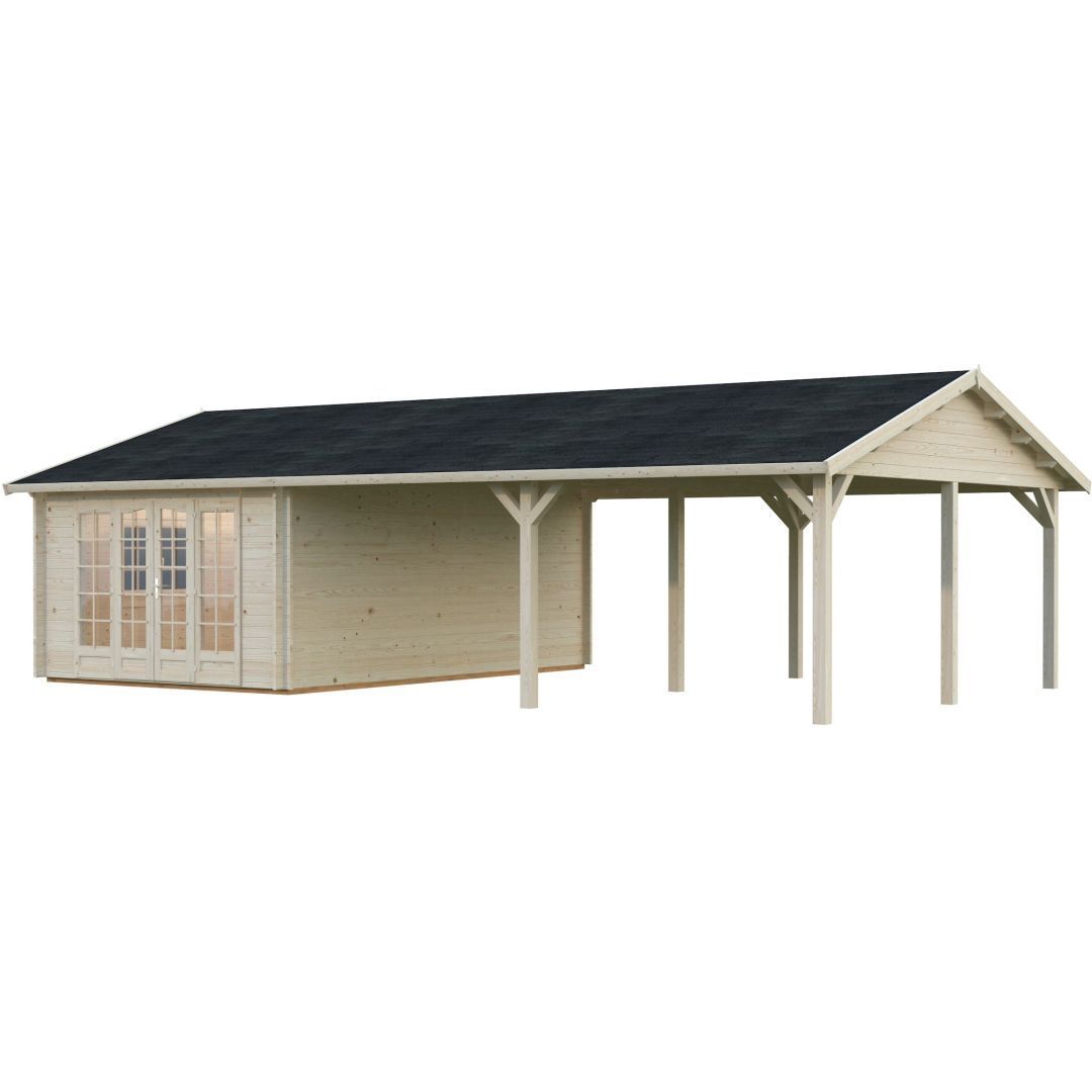 AIAMAJA PALMAKO IRENE 21,9+5,2M² GTIN: 4743142007150 Aiamajad_ Aiamaja Palmako Irene 21,9+5,2 m² on kvaliteetne kahetoaline puitkonstruktsioon, mis sobib ideaalselt suvemajaks või aiapaviljoniks.<br /><br /><br><br><b>Tehnilised andmed:</b><br /><br>• Seinamõõdud: 510 × 550 cm<br /><br>• Detailimõõdud: 530 × 570 cm<br /><br>• Seina kõrgus: 228 cm<br /><br>• Harja kõrgus: 321 cm<br /><br>• Seina paksus: 44 mm<br /><br>• Katuse pindala: 35,4 m²<br /><br>• Katuse kalle: 18,7°<br /><br>• Katuse ja põranda lauad: 19 mm<br /><br>• Ukseavad: 73 × 175 cm ja 114 × 186 cm<br /><br>• Aknaava: 78 × 89 cm<br /><br>• Klaaspakett: 3–6–3 mm<br /><br>• Materjal: põhjamaine kuusepuit<br /><br>• Komplektis: silinderlukk, kummitihendid, silikoon, tormiliistud, tuuletapiga seinadetailid, liimpuidust ukseraam, kastetud vundamendiprussid, montaaživahendid<br /><br /><br><br><b>Soovitatavad lisatarvikud:</b><br /><br>• Katusekattematerjal (nt bituumen- või plekk-katus)<br /><br>• Vundamendimaterjalid (nt betoonplokid või kruvivaiad)<br /><br>• Välisviimistlusvahendid (nt puidukaitsevahendid või värvid)<br /><br>• Siseviimistlusmaterjalid (nt põrandakatted või soojustus)<br /><br>• Vihmaveesüsteemid (nt räästad ja vihmaveetorud)<br /><br /><br><br> Tarnitakse värvimata kujul ja katusekate ei sisaldu maja komplektis. Tarnitakse detailidena, mitte kokkupanduna. | 30 tp | 6805,00 € | Poodi | |