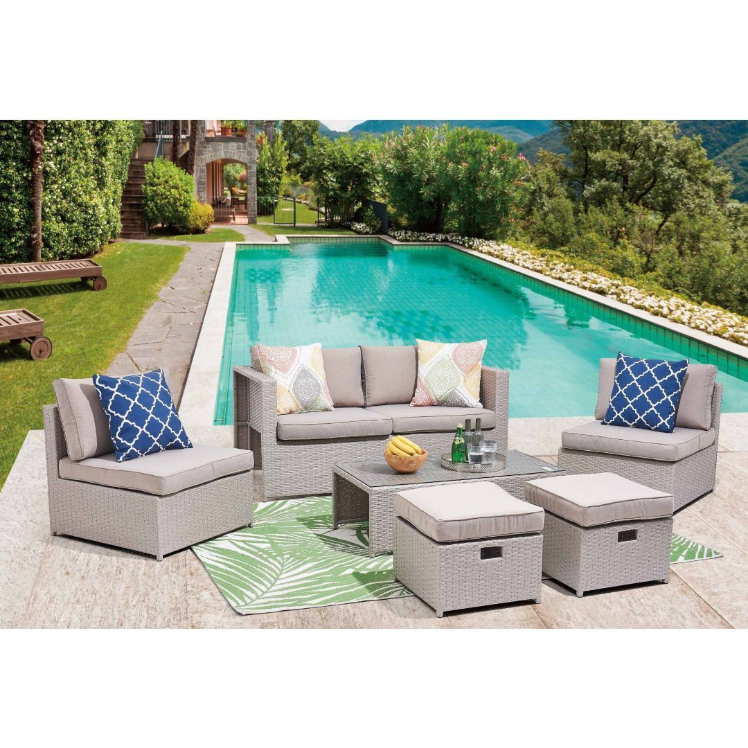 AIAMÖÖBLI KOMPLEKT 6-OSALINE GTIN: 200007047859 Rotangmööbel 6-osaline aiamööbli komplekt, kuhu kuulub diivan, kaks tool, kaks jalatuge ja laud. Diivan on mõõtmetega 145 x 70 x 64 cm, tool 65 x 70 x 64 cm, laud 100 x 50 x 32 cm ja jalatugi 44 x 44 x 27,5 cm. Tooli kandevõime on 160 kg, diivanil 320 kg ja laual 75 kg. Aiamööbel on UV- ja ilmastikukindel. Aiamööbel on valmistatud rotangist, raam metallist ja padjad polüestrist. | Kohal | 679,20 € | Poodi | |