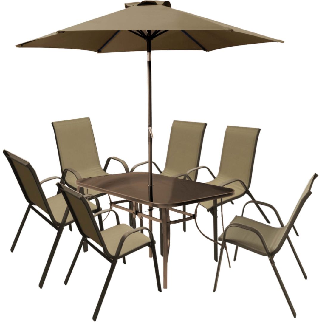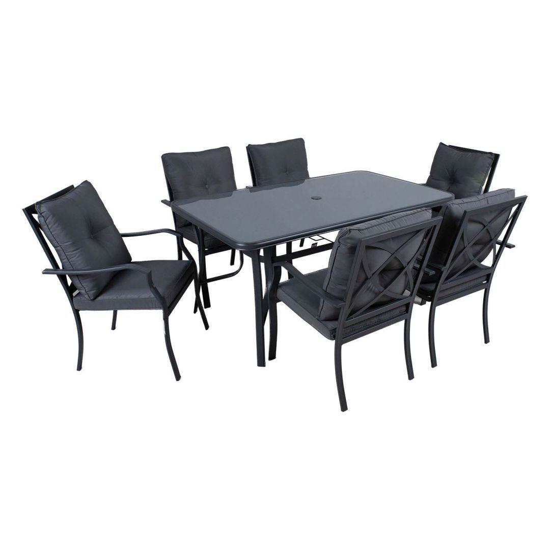 AIAMÖÖBLIKOMPLEKT 7-OSALINE METALL GTIN: 200007523568 Metallmööbel 7-osaline metallist aiamööblikomplekt. Komplekti kuulub 1 laud mõõduga 150 x 80 x 73 cm ja 6 tooli mõõtmetega D73 x W54 x H90 cm.<br /><br><br /><br>Laud: mustast klaasist lauaplaat, terasraam<br /><br>Tool: 2*1 Textilene, terasraam pulbervärviga<br /> | Kohal | 263,20 € | Poodi | |