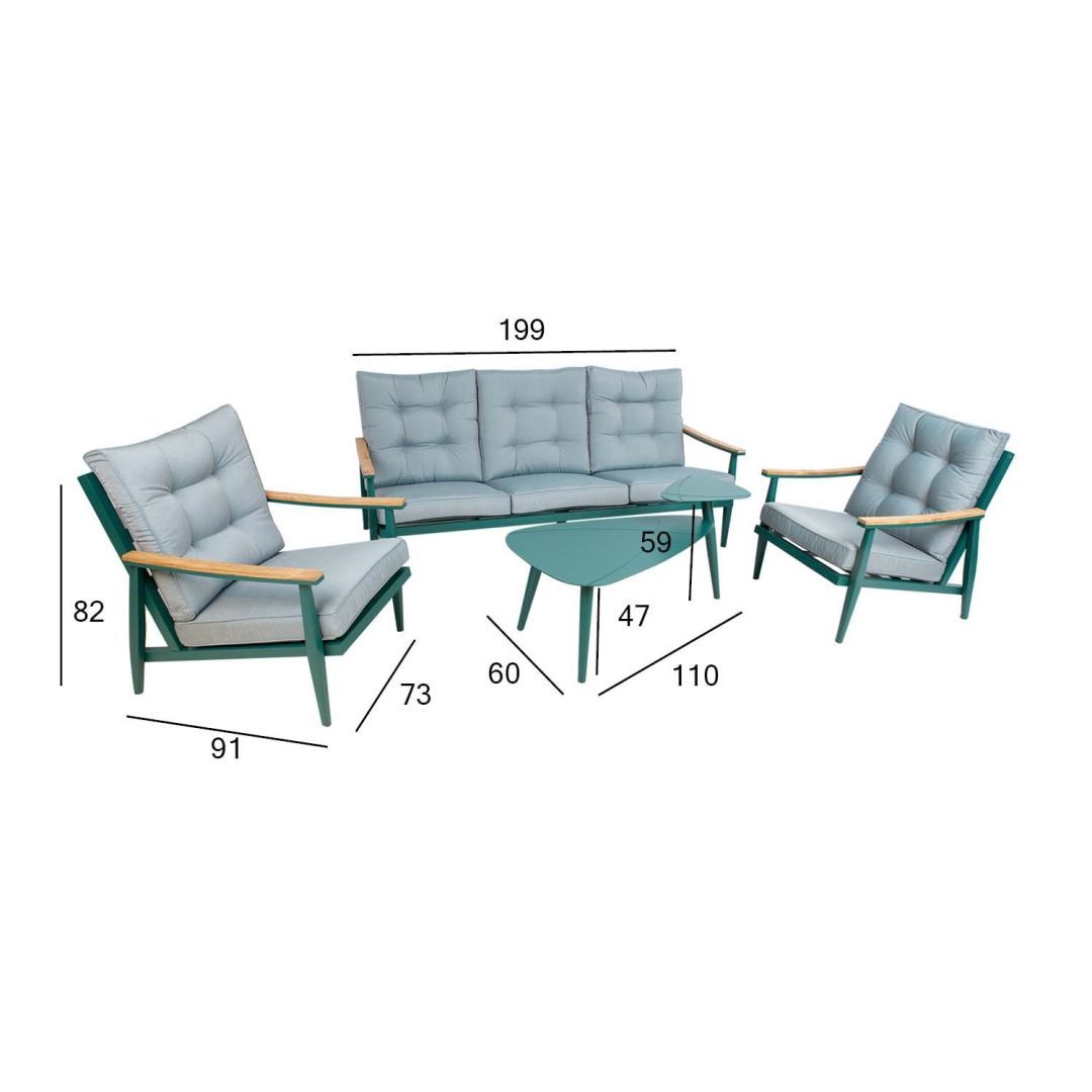 AIAMÖÖBLIKOMPLEKT CAVINE LAUD, DIIVAN, 2 TOOLI GTIN: 4741243235205 Metallmööbel Aiamööblikomplekt CAVINE laud, diivan ja 2 tugitooli, roheline. Huvitav värvilahendus, 2-tasandiline diivanilaud ja tiigipuust liistud annavad komplektile omapära. Kõigi komplekti osade põhikonstruktsioon ja lauaplaat on valmistatud alumiiniumist ja viimistletud rohelise pulbervärviga. Paksud padjad tagavad suurepärase istumismugavuse. Padjakatted on valmistatud väga hea ilmastikukindlusega olefin kangast. Komplekti kuulub 3+2 istmepatja 63x63x10cm ja 3+2 seljatoepatja 68x68x10cm. Istmepatjade katted on lukuga suletavad, eemaldatavad ja pestavad. Seljatoepatjade katteid ei ole eemaldatavad. 3-kohalise diivani mõõdud on 199x91xH82cm, tugitooli mõõdud 73x91xH82cm, istme kõrgus raan ääreni on 32cm, koos padjaga 42cm. Laua mõõdud on 110x60xH47/59cm. Toode on muutlikes ilmastikutingimustes väga hästi vastupidav ja lihtsalt hooldatav. Kaitset ilmastikuolude eest vajavad ainult padjad. Välitingimustes kasutatava mööbli eluea pikendamiseks soovitame kasutada välimööbli katteid. HOIUSTAMINE: suvehooaja lõppedes soovitame aiamööblit hoiustada siseruumides. Puhastage ja kuivatage mööbel enne hoiule panekut. Kasutage hoiustamiseks kuiva ning hea ventilatsiooniga ruumi. | 14 tp | 945,00 € | Poodi | |
