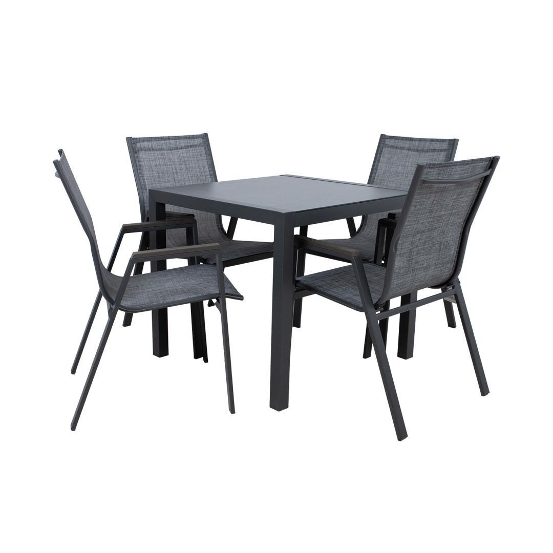 AIAMÖÖBLIKOMPLEKT DELGADO LAUD JA 4 TOOLI GTIN: 4741617108906 Metallmööbel Aiamööblikomplekt DELGADO laud ja 4 tooli. Laua mõõdud on 80x80xH72cm. Lauaplaat: 5mm hall karastatud klaas. Laua ja toolide jalad ja raam on valmistatud terasest ja viimistletud halli pulbervärviga. Tooli textilene iste laseb hästi õhku läbi, kuivab kiiresti ja seda on lihtne puhastada. Tooli käetugedel on hallid kunstpuidust liistud. Toolid on virnastatavad ning nende hoiustamine on lihtne ja ruumi säästev. Tooli üldmõõdud on 56x61xH90cm. Kaalupiirang 100kg. | 14 tp | 215,00 € | Poodi | |
