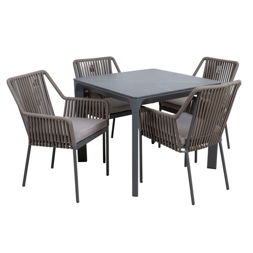 AIAMÖÖBLIKOMPLEKT CARVES LAUD JA 4 TOOLI GTIN: 4741617108838 Metallmööbel Aiamööblikomplekt CARVES laud ja 4 tooli. Laud CARVES ühendab endas minimalistliku disaini ja uudse tehnoloogia. Paagutatud kivist (sintered stone) lauaplaadi valmistamisel on kasutatud innovatiivset tehnoloogiat, mis jäljendab loodusliku kivi moodustumise protsessi sügaval maakoores. Kaoliini ehk portselansavi osakesed töödeldakse 1200 kraadises kuumuses, mille tulemusena moodustub materjal, mis oma omadustel ja välimuselt sarnaneb naturaalse kiviga. Lauaplaat on küll õhuke, kuid väga tugev (suhteline kõvadus Mohsi skaalal 7), kulumiskindel, talub hästi kõrget temperatuuri ja erinevaid ilmastikutingimusi, ei ima plekke ja seda on väga lihtne puhastada ja hooldada. Kuna keemilisi sideaineid ei ole kasutatud on materjal hügieeniline. TÄHELEPANU! Vältige lööke, põrutusi ja kukkumist. Laua mõõdud on 90x90xH75cm, lauaplaadi paksus 11mm. Laua ja toolide jalad ja raam on valmistatud alumiiniumist ja viimistletud halli pulbervärviga. Tooli selja- ja käetoed on kaetud textilene nöörist punutisega. Istmepadjad kuuluvad komplekti. Padjakatted on valmistatud polüesterkangast. Padja paksus 5cm. Istmepõhi on toestatud on alumiiniumliistudega. Tooli mõõdud on 56x57xH85cm, istmekõrgus 44cm. Kaalupiirang 100kg. Toolid on virnastatavad ning nende hoiustamine on lihtne ja ruumi säästev. Toode on muutlikes ilmastikutingimustes vastupidav ja lihtsalt hooldatav. Välitingimustes kasutatava mööbli eluea pikendamiseks soovitame kasutada välimööbli katteid. HOIUSTAMINE: suvehooaja lõppedes soovitame aiamööblit hoiustada siseruumides. Puhastage ja kuivatage mööbel enne hoiule panekut. Kasutage hoiustamiseks kuiva ning hea ventilatsiooniga ruumi. | 14 tp | 699,00 € | Poodi | |