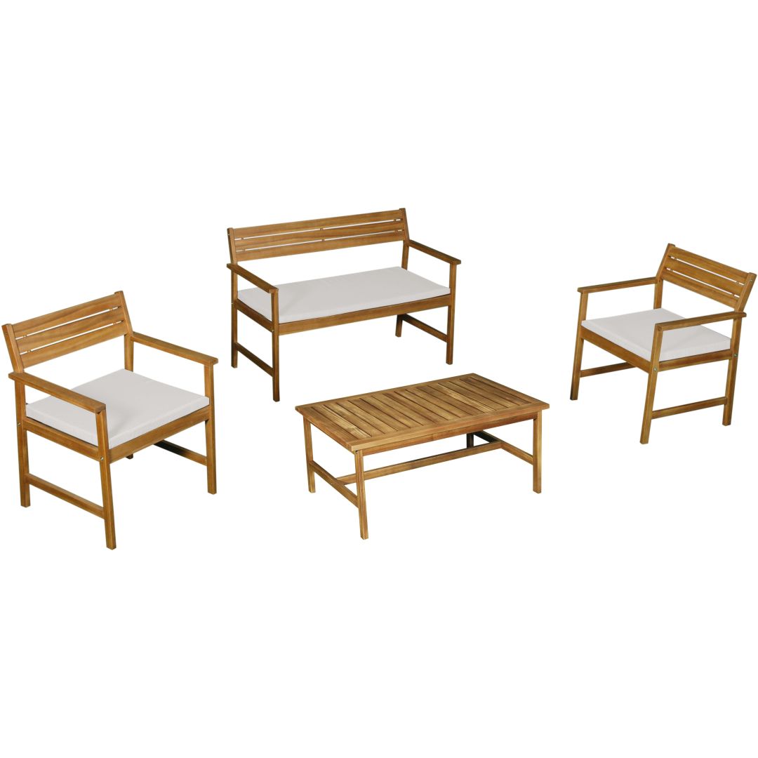 AIAMÖÖBLIKOMPLEKT 4-OSALINE AKAATSIAPUIT GTIN: 200007523537 Puitmööbel 4-osaline aiamööblikomplekt. FSC akatsiapuit, õliviimistlus.<br /><br>• Istmepadi: polüester 180g/m², värvus: beež, paksus 4,5 cm<br /><br>• 1 x Laud: 90 x 60 x 40H cm, liist 53 mm. Raam 22 mm<br /><br>• 2 x Tugitool: 62 x 54 x 77H cm, liist 55 mm<br /><br>• 1 x Pink: 114 x 54 x 77H cm, liist 55 mm | Kohal | 327,20 € | Poodi | |