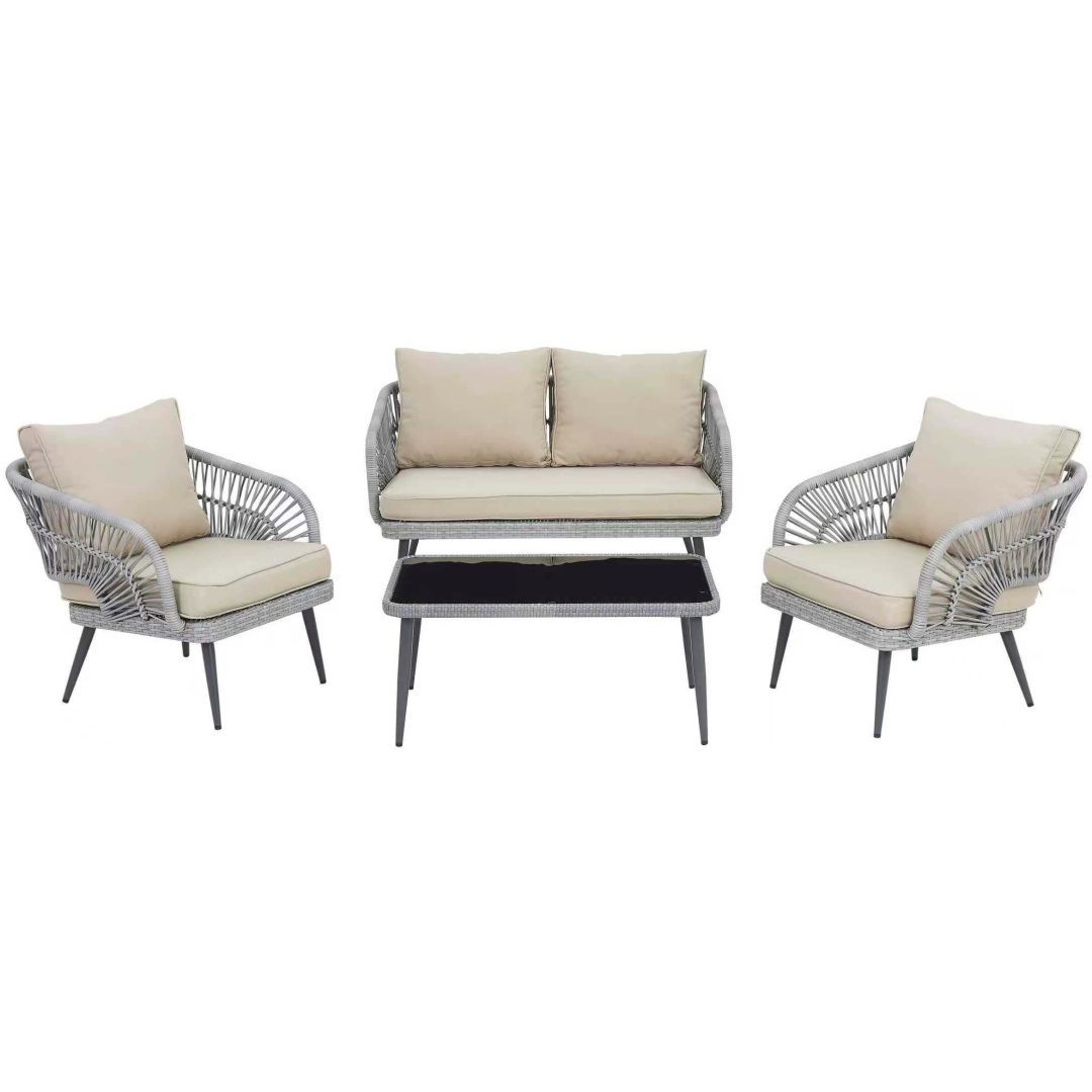 AIAMÖÖBLIKOMPLEKT CALISTA, LAUD, DIIVAN JA 2 TOOLI GTIN: 4741243283510 Punutud mööbel Aiamööblikomplekt CALISTA laud, diivan ja 2 tooli, hall. Diivani ja tugitoolide alumiiniumraamid on kaetud efektse plastikpunutisega. Laua mõõdud on 160x80xH36cm, lauaplaat: 5mm taustvärvitud hall karastatud klaas. Laua jalad ja raam on valmistatud alumiiniumist ja viimistletud halli pulbervärviga. Diivani mõõdud on 220x112xH67cm, tugitooli mõõdud on 137x112xH67cm. Padjad kuuluvad komplekti. Padjakatted on valmistatud hallist polüesterkangast. Istmepatjade paksus 16cm. Toode on muutlikes ilmastikutingimustes vastupidav ja väga lihtsalt hooldatav, kaitset ilmastikutingimuste eest vajavad ainult padjad. Välitingimustes kasutatava mööbli eluea pikendamiseks soovitame kasutada välimööbli katteid. HOIUSTAMINE: suvehooaja lõppedes soovitame aiamööblit hoiustada siseruumides. Puhastage ja kuivatage mööbel enne hoiule panekut. Kasutage hoiustamiseks kuiva ning hea ventilatsiooniga ruumi. | 14 tp | 2599,00 € | Poodi | |