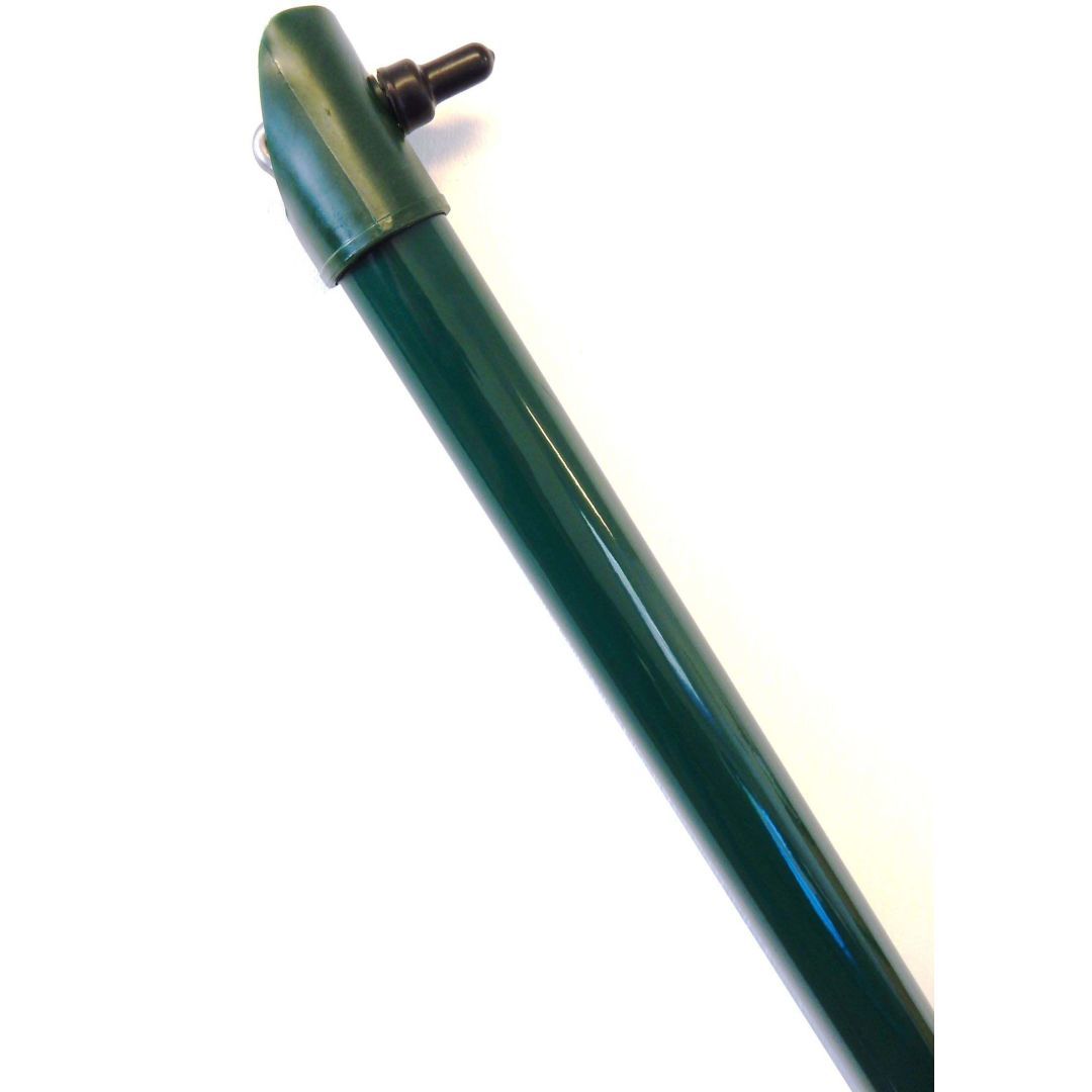 AIAPOSTI KALDTUGI 38X2000MM ROHELINE RAL6005 GTIN: 200007445136 Aiavõrkude lisatarvikud Kaldtuge kasutatakse punutud- või keevisvõrkaia postide toestamiseks.<br><br />Sobib profiilpostile ja ümarpostile. Kaldtoe läbimõõt on 38 mm, sõltumata kasutatava posti läbimõõdust.<br><br />Kaldtugi peab olema vähemalt sama pikk kui toestatav post.<br> <br />Kaldtugi on ette nähtud kasutamiseks algus- ja nurgapostidel ning iga 30 m tagant sirglõikudel.<br><br />Kasutamine: 2 tk nurkadesse, 2 tk väravate kõrvale, 1 alustades ja lõpetades. Kui sirge on pikem kui 30 m, siis ka keskele 2 tk.<br><br />Paigaldus: 2/3 posti kõrgusele maapinnast puuritakse 8 mm puuriotsikuga auk, poldi konksjas osa asetatakse auku ja teisele poole paigaldatakse otsik ning kaldtugi.<br><br />Kinnitatakse mutriga ja asetatakse plastotsik.<br><br />Posti kõrgus: 2000 mm<br><br />Posti läbimõõt: 38 mm<br><br />Posti seina paksus: 1,3 mm<br><br />Materjal: metall + pulbervärv<br><br />Värv: RAL6005 roheline<br><br />Komplektis kuulub post, plastist otsik, polt, mutter ning poldi ja mutri kaitsekork. | 14 tp | 9,60 € | Poodi | |