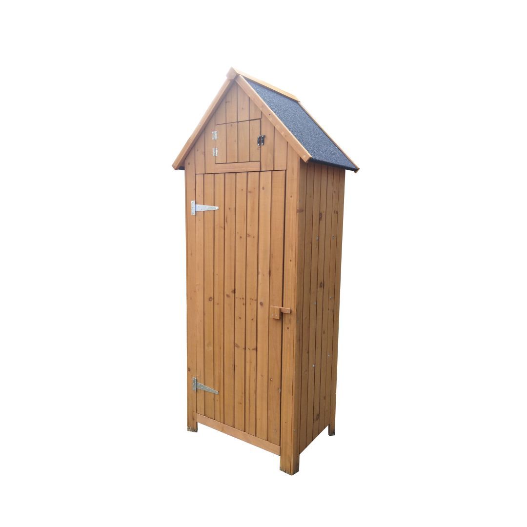 Kapp terrassile, aeda või suvekööki. Ustega jalgadel kapp, ilmastikukindel katus, riiulid. Mõõdud: 77 x 54,3 x 179 cm. Materjal: immutatud puit. Tarnitakse detailidena, mitte kokkupanduna.