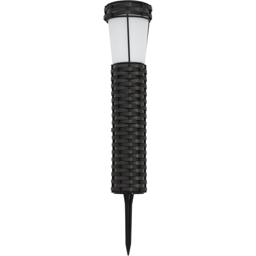 Solar aiavalgusti mõõtmed on 5,5 x 5,5 x 36,5 cm. Valgusti on valmistatud plastikust ja sellel on 6 sooja valge valgusega LED-i. Valgusefekt on leegiefekt. Kasutusel on amorfne päikesepaneel. Komplektis on 1 x 1,2 V 2/3 AAA 100 mAh aku.