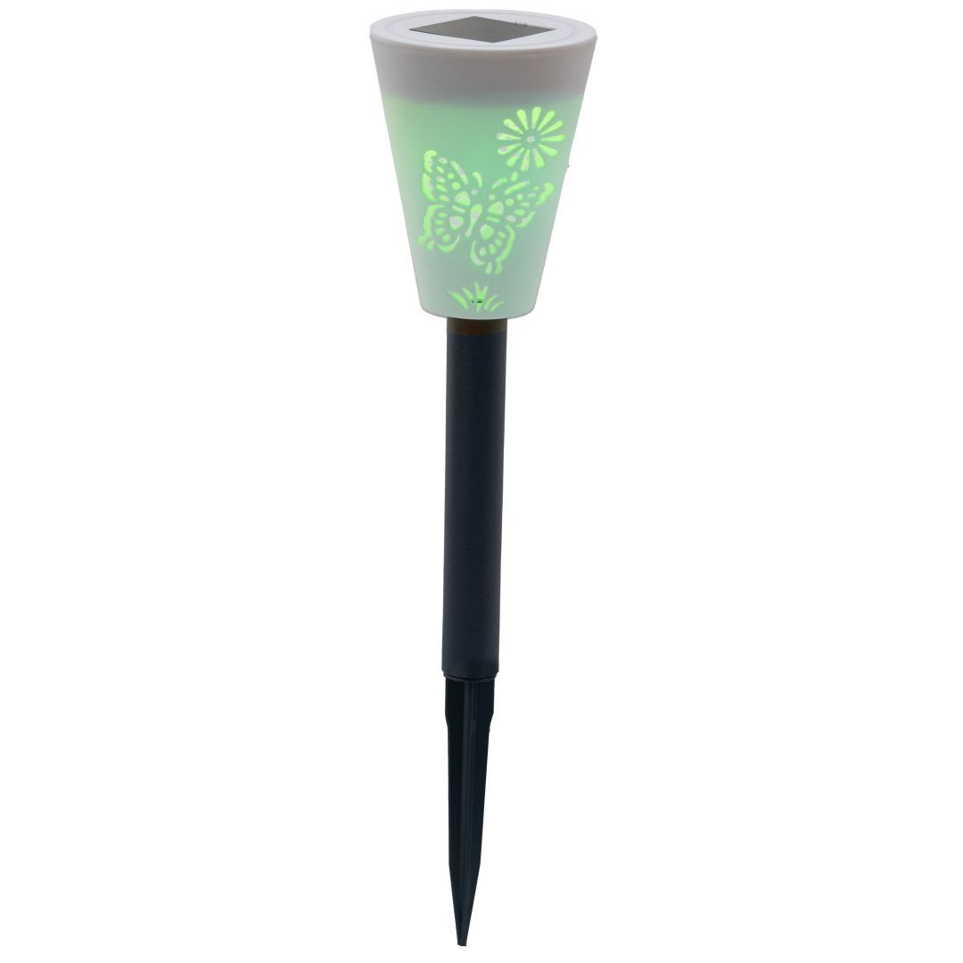 Solar aiavalgusti kõrgus on 72 cm. Liblika mõõt on 10 x 7 cm ja komplektis on 6 liblikat. Valgusti on valmistatud plastikust ja fiiberoptilisest materjalist. Valgustil on 6 sooja valge valgusega LED-i ja valgusefekt on pidev valgus. Lüliti on ON-OFF. Kasutusel on amorfne päikesepaneel. Komplektis on 1 x 1,2 V 200 mAh Ni-MH laetav aku.