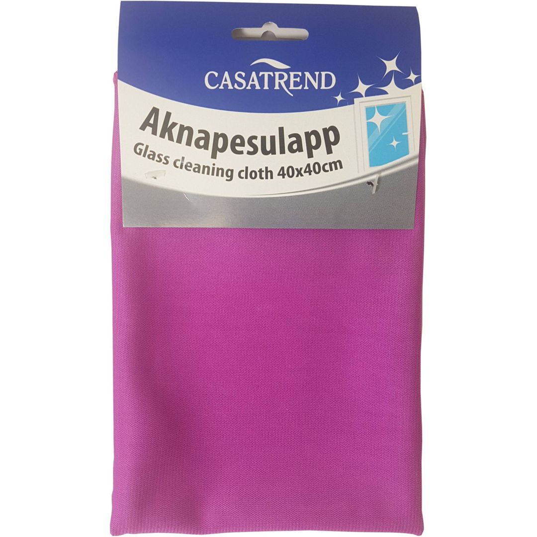 Casatrend puhastuslapp erinevate siledate klaaspindade, peeglite ja ekraanide puhastamiseks ja hooldamiseks. Toode on pestav, mitte kasutada valgendajaid ja kangapehmendajaid. Lapi mõõtmed on 40 x 40 cm.