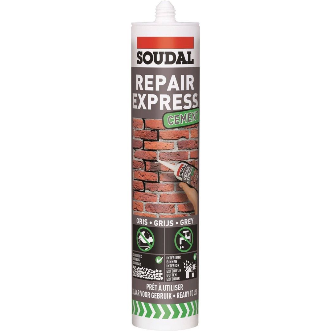 Soudal akrüülhermeetik Cement Repair Express on kõrgekvaliteetne granulaarse struktuuriga täitepasta ühenduste ja pragude täitmiseks betoonis. Väga hea nake paljude mineraalsete aluspindadega nii sise- kui välistöödel. Väga kiire kõvenemisega, kõvenemisel ei tõmbu kokku. Ülevärvitav mõne tunni pärast (aeg sõltub kasutatava materjali kogusest) Kasutamine: Aukude ja pragude täitmiseks betoonis ja tsementpindadel, krohviparandustöödel, betoontreppide jms parandamiseks. Pakendi kogus on 290 ml.