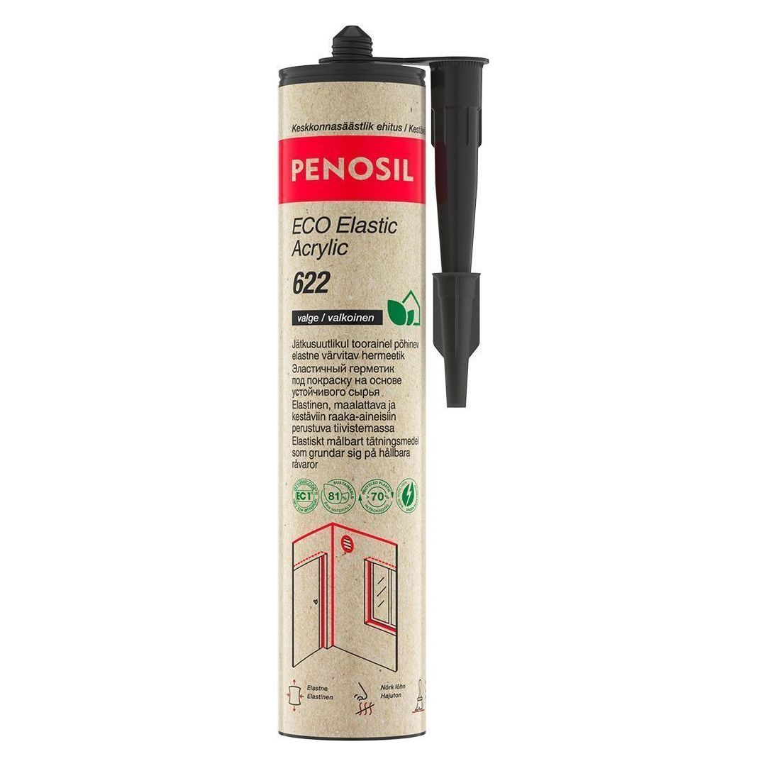 Penosil ECO Elastic Acrylic 622 on taaskasutatud ja biopõhistel materjalidel põhinev elastne akrüülhermeetik liikuvate vuukide täitmiseks enne värvimist ja muid viimistlustöid. Sise- ja väliskasutus, hea liikumisvõime (±12,5%).Helevalge, eriti sile pind. Lihtne puhastada, jääb elastseks. Madal VOC, ohutu kasutada. Praktiliselt lõhnatu, värvitav. Kogus on 300 ml.<br /><br><br /><iframe width="560" height="315" src="https://www.youtube.com/embed/vS5RJLELu6M?si=4T01AScMNg0igR_i" title="YouTube video player" frameborder="0" allow="accelerometer; autoplay; clipboard-write; encrypted-media; gyroscope; picture-in-picture; web-share" allowfullscreen></iframe>
