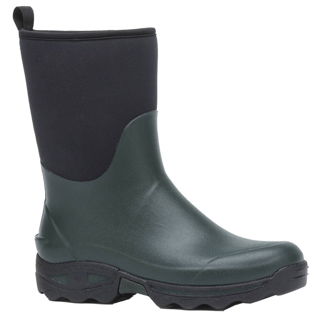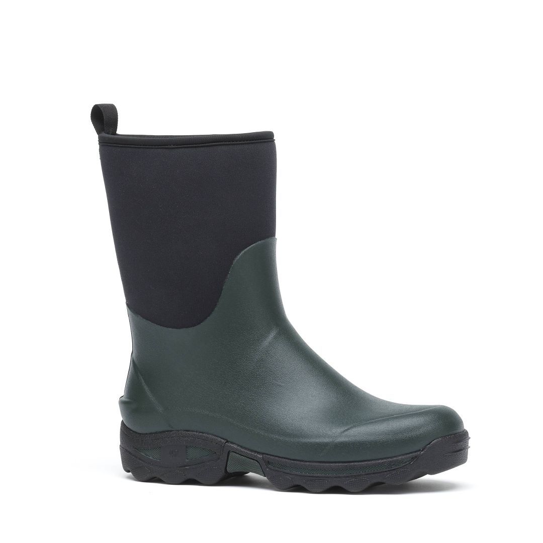 Poolkõrge neopreen aiakummik meestele. Naturaalsest kautšukist (kummist) vastupidav kummik. Isepuhastuv, libisemiskindel ja mustuse kogunemise vastane välistald, jala soojusega vormuv ja eemaldatav sisetald , mis tagab mugavuse igal sammul. Neopreenist vooder on hingav ja väga mugav jalale, külje peal on kummist laiendus ja ülaservas väike aasake, et saabast oleks mugav jalga panna. Värvus roheline.