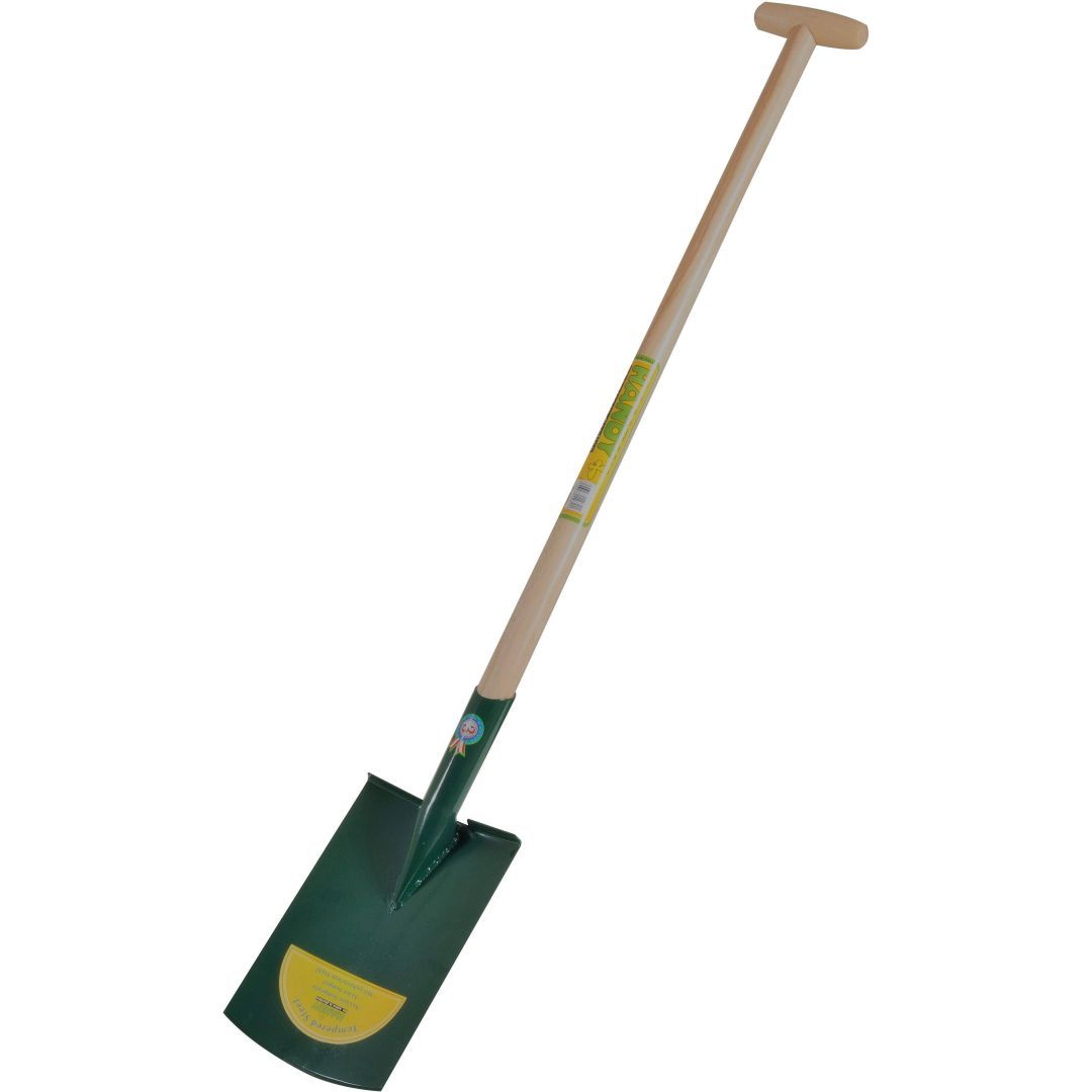Soliidne ja ergonoomiline ruut-labidas - cm 28 x 18 - karastatud ja teravast terasest, kaetud värvi ja lakiga - varustatud lakitud puidust kindla varre ja mitte libiseva "T" käepidemega - cm 85