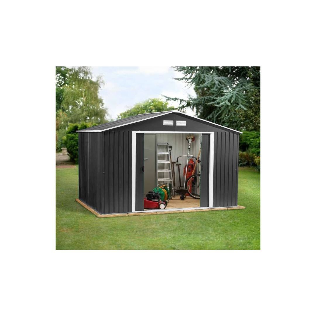 Halli värvusega aiakuur, mille pindala on 10,2 m². Metallist kuumtsingitud aiakuurides on mugav hoida aiatööriiste välistingimuste eest. Harjad, kühvlid, saed ja muruniiduk on aastaringselt kuivad ja puhtad. Aiakuuri laius on 3400 mm, pikkus 3190 mm ja kõrgus 2100 mm. Aiakuuri seinad ja katus on valmistatud 0,25 mm galvaniseeritud terasplekist ja karkass vastupidavast 0,6 mm galvaniseeritud terasest. Kuuril on 4 ventilatsiooniava ja lükanduksed kõrgusega 1620 mm. Toode on pakendatud kahte kasti.<br /><br />Põhja mõõdud: pikkus 3090 mm x laius 3300 mm x kõrgus 2100 mm.