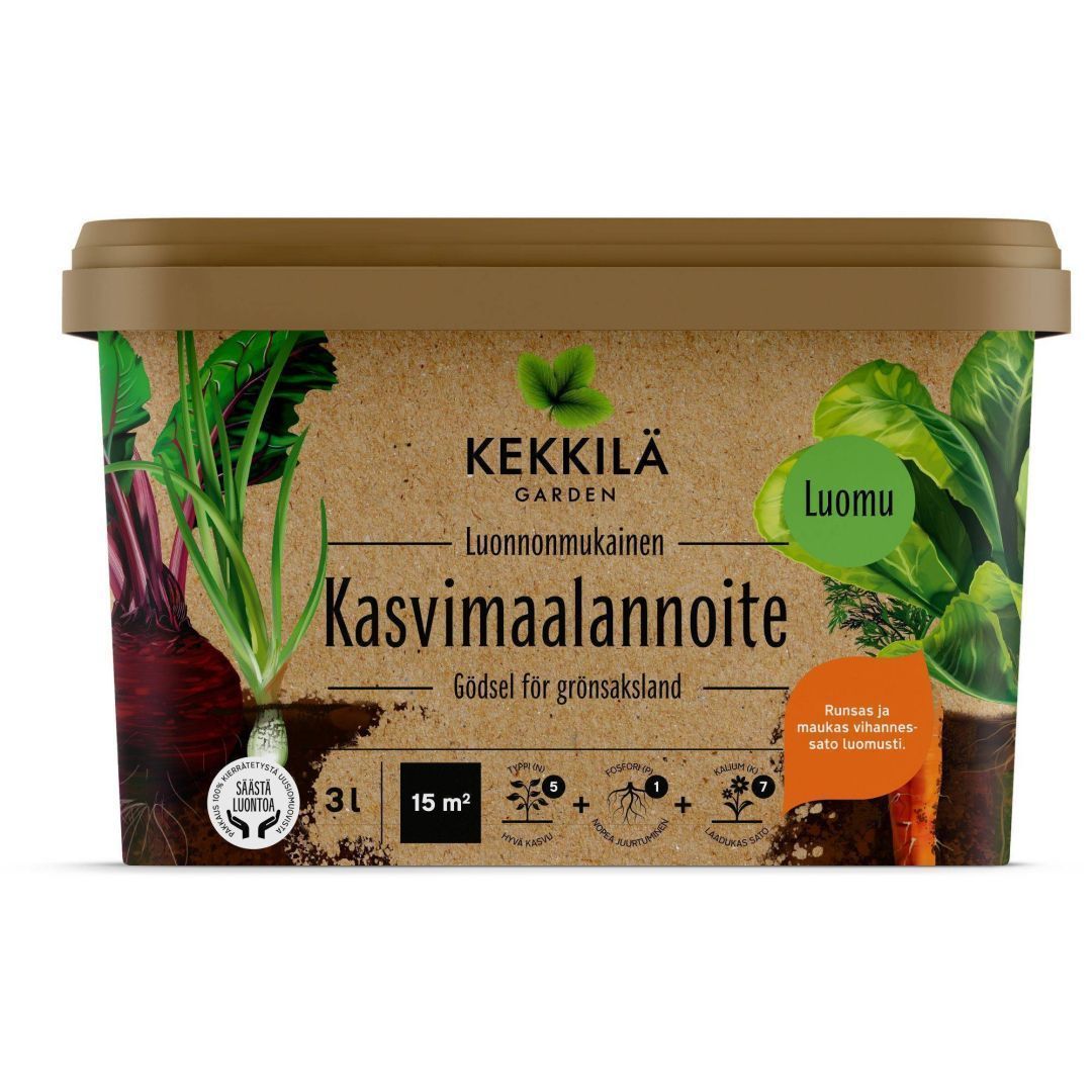 Kekkilä Mahe aiamaaväetises on aeglaselt vabanevad looduslikud toitained, mis annavad taimedele kasvujõudu pika aja vältel ning aitavad samas kaasa mikroorganismide tegevusele mullas. Teralist väetist on lihtne doseerida ja laotada. Loodust säästev taaskasutusväetis. Selle tooraineteks on toidutootmise kõrvalsaadused, milles sisalduvad toitained suunatakse niimoodi tagasi pinnasesse looduslikul ja keskkonnasõbralikul viisil. Kekkilä Mahe Aiamaaväetis vastab EL territooriumil kehtivatele mahepõllumajandusliku tootmise nõuetele (EL 834/2007, 889/2008). Toorained: fermenteeritud taimeekstraktid, sisaldavad nt. kartulit, soja, nisu, maisi, õllepärmi, kookost, suhkrupeeti ja merevetikaid. Toitainesisaldus: üldlämmastik (N) 4,5%, vees lahustuv lämmastik (N) 0,5%, üldfosfor (P) 1,1%, vees lahustuv fosfor (P) 0,4%, üldkaalium (K) 6,6%, kaltsium (Ca) 2,9%, magneesium (Mg) 0,5%, väävel (S) 0,5%, boor (B) 15 mg/kg kuivainet, vask (Cu) 35 mg/kg kuivainet, raud (Fe) 400 mg/kg kuivainet, tsink (Zn) 130 mg/kg kuivainet. Niiskus: 10%. Orgaaniline aine: 65%. Pakendis 3 L.