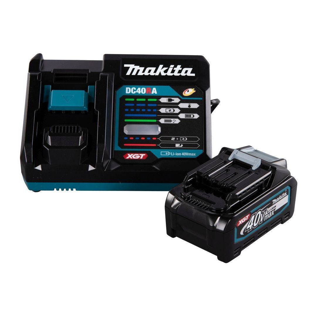 Makita praktiline XGT® 40 V max powerpack sisaldab ühte 4,0 Ah Li-ion akut ja kiirlaadijat. Aku on varustatud laadimistaseme näidikuga. 4,0 Ah aku laadimisaeg 45 minutit.