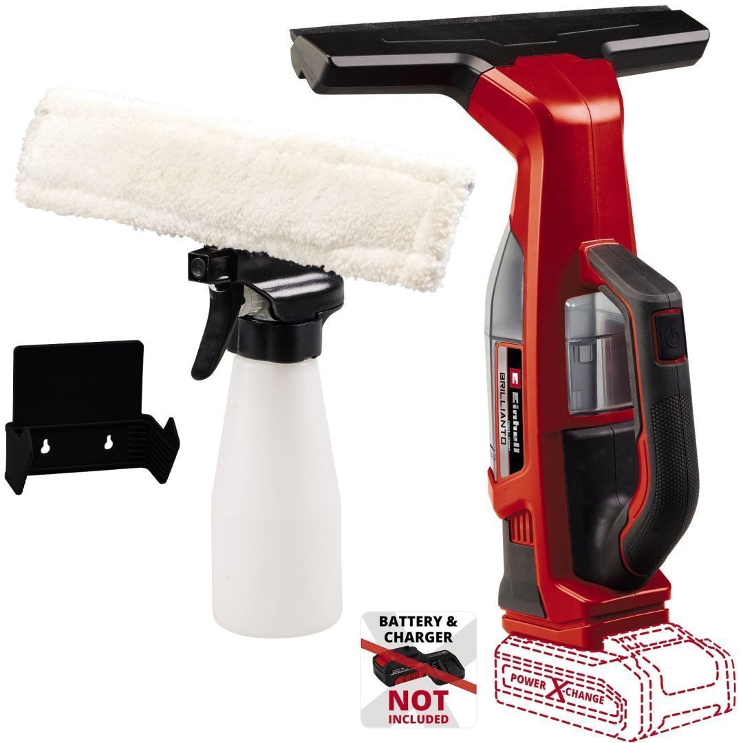 Puhtad ja triipudeta aknad – Einhelli akuaknapesuri BRILLIANTO jaoks on see imelihtne. Kuna see kuulub Power X-Change’i tooteperre, saab seda kasutada süsteemiseeria kõigi akude ja akulaadijaitega. Aknapesuriga on kaasas 300 ml pihustuspudel ja mikrokiudlapp. Imiotsaku ja üheosalise silikoonriba täiuslik koostoime tagab triipudeta aknad. 100 ml mustaveemahuti saab seadmest tühjendamiseks täielikult eemaldada. Akuaknapesuriga on kaasas seinahoidik, tänu millele on seda lihtne hoiustada ja see ei võta palju ruumi. Akuaknapesuri BRILLIANTO tarnekomplekti ei kuulu aku ega akulaadija.