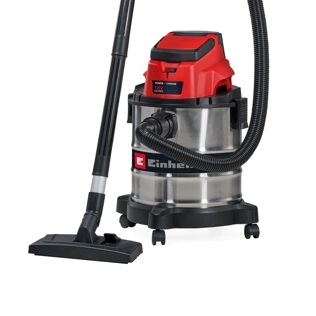 Einhelli aku vee- ja tolmuimeja TC-VC 18/20 Li-Solo on võimas liige Einhelli Power X-Change süsteemiperekonnas , mida saab omavahel paindlikult kombineerida. Roostevabast terasest konteiner mahutab 20 liitrit. 36 mm läbimõõduga voolikusüsteem tagab suure õhu- ja mustuse läbilaskevõime. Neli tugevat ratast tagavad liikuva ja paindliku kasutamise. Tarvikuid saab kenasti hoiustada tarvikuhoidikus. Tarnimine toimub koos 1,50 m imemisvooliku, 3-osalise pikendustoru, kombineeritud, liitmiku- ja polsterdüüsi ning vahufiltri ja plisseeritud filtri ja mustuse kogumiskotiga. Tarnitakse ilma aku ja laadijata.