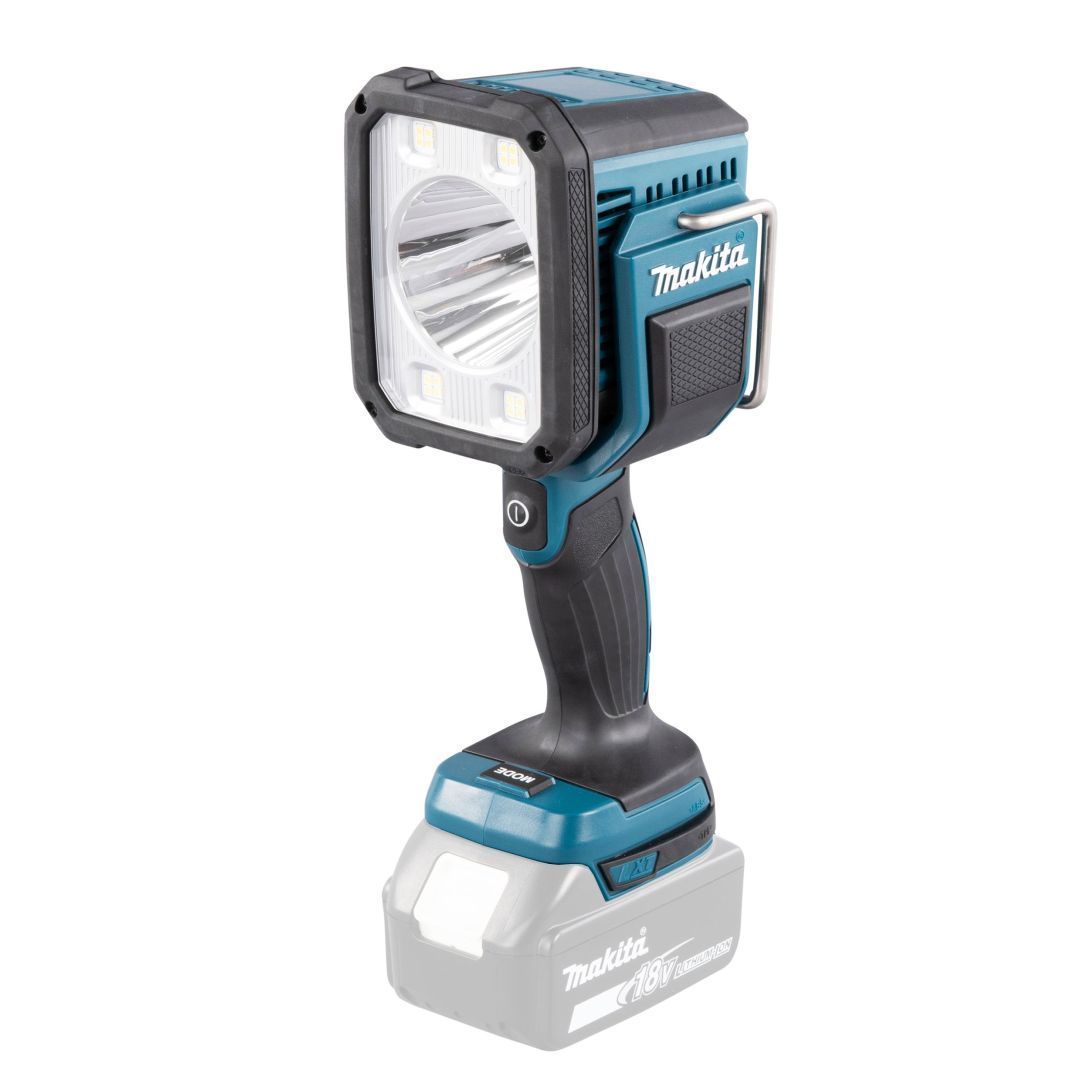 Makita DML809 LED prožektor, mille 96 valge valgustusega LED-lampi annavad heleda ja ühtlase valguse maks.10 000 lm. Töötab nii 18V akude kui ka vahelduvvooluga (kaabel kuulub komplekti). 3 heledusastet: kõrge / keskmine / madal. Mälufunktsiooniga kontroller salvestab väljalülitamisel heleduse seaded, võimaldab vältida heleduse uuesti reguleerimise vajadust taas sisselülitamisel. Valgusnurga reguleerimise võimalus -30ᵒ kuni 210ᵒ vahel. Aku tühjaks saamise eest hoiatamise funktsioon. Tööaeg kuni 8,5 h. Tegemist on ilma aku ja laadijata mudeliga.