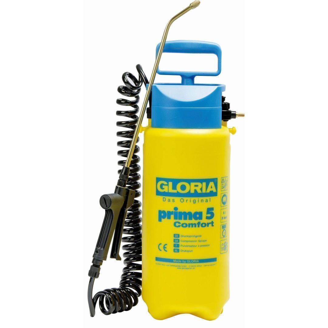 Gloria plastikust aiaprits Prima 5 Comfort on vastupidav ja tal on messingust pritsimisvarras. Reguleeritav messingust koonusotsik. Võimsa survepumbaga, mille maksimaalne surve on 3 bar´i.. Spiraal voolik, prits on õlal kaasaskantav. Mahutavus 5 L ja paagil on vedeliku taseme indikaator.