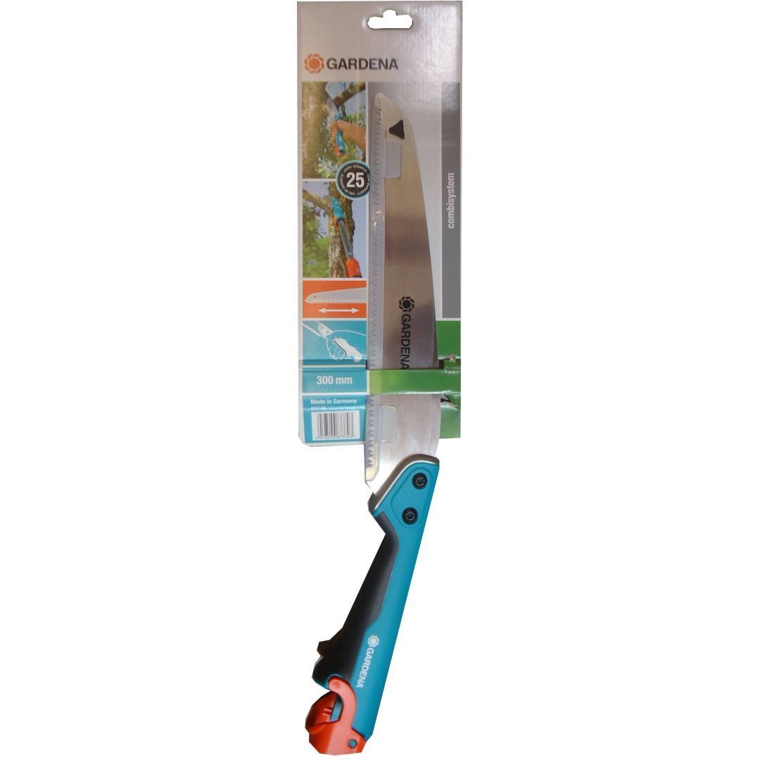 Gardena Combisystem kõver aednikusaag terapikkusega 315 mm on kasutamisel paindlik sõltumata sellest, kus seda kasutatakse. Kui soovitakse lõigata hästi ligipääsetavaid oksi, võib kasutada seda tavalise käsisaena. Saag püsib hästi käes tänu ergonoomilisele, mugavate ja pehmete plastkomponentidega käepidemele. Kui soovitakse lõigata oksi kuni 5 meetri kõrguselt, saab aednikusae Combisystem pikendada teleskoopkäepidet. Praktiline: kinnitage Combisystem käepide saele. Turvalukk kindlustab ühenduse turvalisuse. <br /><br />Täppissaehambad koos impulsskarastatud hambatippude ja kahesuunalise teritusega hammastega tagavad ohutu lõikamise. Tänu spetsiaalsele kattekihile on kõver CS-aednikusaag 300 PP ideaalselt rooste eest kaitstud. Käsisae käepidemeotsas olev piiraja takistab libisemist ka tõmbeliigutuse ajal. Saetud oksi on lihtne eemaldada kõvera saetera otsas oleva konksu abil. Sae saab riputada integreeritud aasa abil ning saetera kaitsmiseks võib kasutada terakatet. See tagab CS-aednikusae pideva turvalise hoidmise. Tootel on 25-aastane garantii.