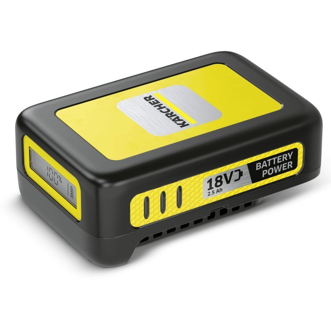 Kärcheri uuendusliku reaalaja tehnoloogiaga 18 V/2.5 Ah Battery Power vahetatav aku näitab LCD ekraanil akutaset. Sobib kasutamiseks kõikidel 18 V Battery Power akuplatvormi seadmetel.