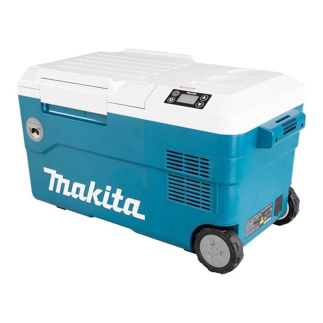 Makita aku külma ja soojakasti jahutamise võimekus on -18°C kuni 10°C.<br />• Viie erineva eelseadistatud programmiga (-18 / -10 / 0 / 5 / 10°C). <br />• Soojendamise võimekus: kaks erinevat soojusprogrammi 55°C ja 60°C (ohutu temperatuur sooja toidu käitlemiseks). <br />• Pikad töötamise ajad: Tööaeg 17 tundi, 2XBL1860B akuga, hoides külmakastis temperatuuri 5°C ja ümbritsev temperatuur 18°C; Tööaeg 5 tundi ühe BL1860B akuga, hoides külmakastis temperatuuri 5°C ja ümbritsev temperatuur 18°C: Tööaeg 4 tundi, 2XBL1860B akuga, hoides soojakastis temperatuuri 60°C ja ümbritsev temperatuur 18°C. <br />• Kompressormootor tagab kõrge efektiivsuse ja suurepärase külmutamistulemuse. <br />• Külmutusaine / kogus: R-134a / 28 g. <br />• Suur 20 L mahutavus; võimalik mahutada kuni neli 2 L plastik pudelit või kuni kakskümmend 500 ml plastik pudelit. <br />• IPX4 niiskus ja tolmukindlus, kui kasutada 18V LXT akutoidet. <br />• Külgmised käepidemed kasti mugavamaks tõstmiseks. <br />• Suured 100 mm diameetriga rattad sujuvaks ja mugavaks transportimiseks. <br />• Akude pesad on kaetud kaanega, vältimaks niiskuse ja mustuse ligipääsu akudele. <br />• USB pesa erinevate nutitehnoloogiate laadimiseks (nt nutitelefonid) (USB pesa tüüp: Type A, DC5V/2.4A) .<br />• LED ekraan, mis näitab selgelt kastis olevat temperatuuri ja akude energiamahutavust. <br />• Küljel asub pudeliavaja, mis hõlbustab jahutatud jookide manustamist. <br />• Termoisolatsiooni paksus 33 mm.
