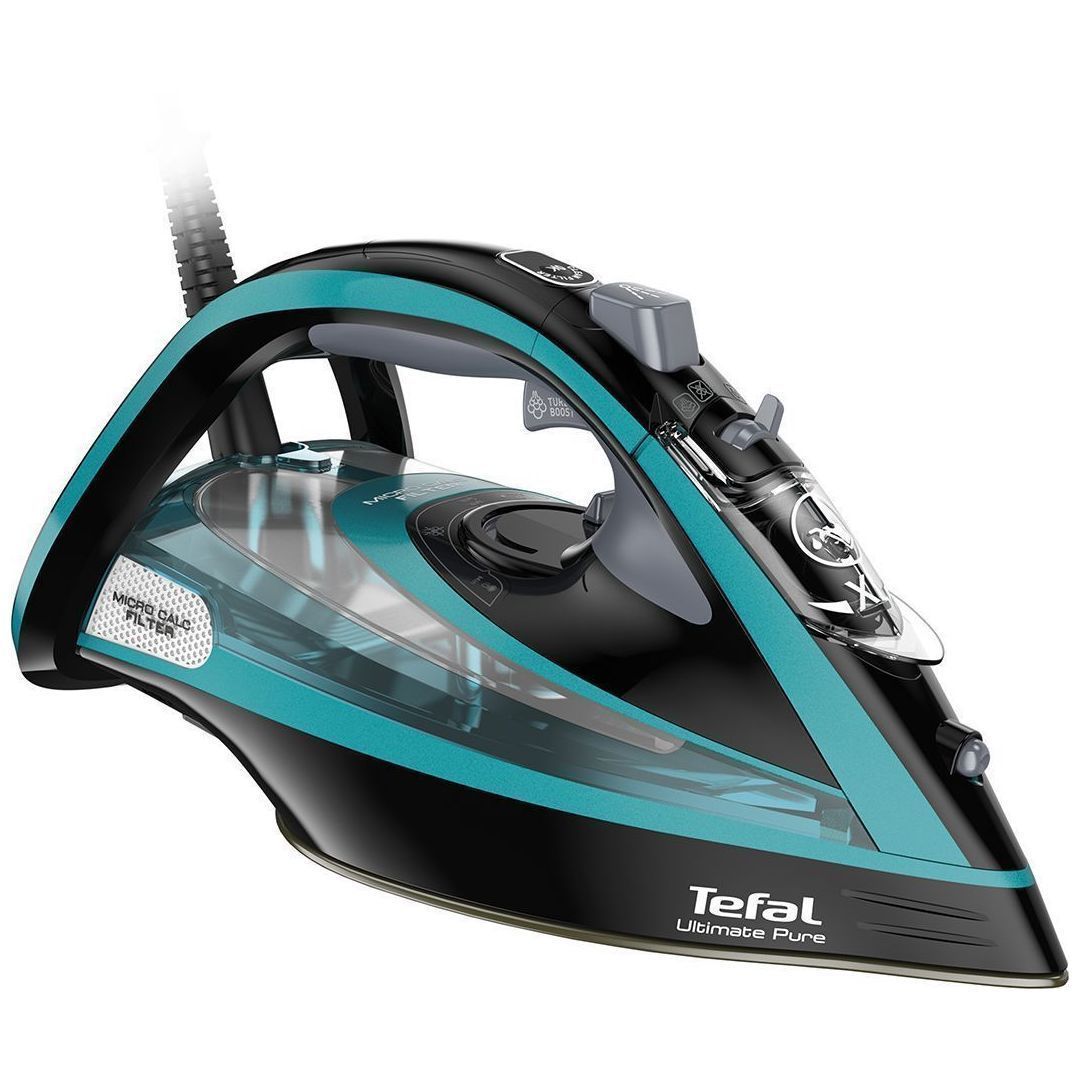 Tefal Ultimate Pure FV9844E0 aurutriikraud, millel on automaatne väljalülitus: triikraud lülitub välja 8 minuti möödudes, kui jätta see püstiselt seisma ning 30 sekundi möödudes, kui jätta see tallale. Durilium AirGlide Autoclean tallaplaat tagab parima libisemise kangal ning optimaalse auru väljastamise tõhusaks triikimiseks. Micro-Calc Filter tehnoloogia aitab ennetada katlakivijääke või plekke triikimise ajal. Triikraual on automaatne auru seadistamine ja tilgalukk. Juhtme pikkus 2 m, võimsus 3200 W ja veepaak 350 ml.