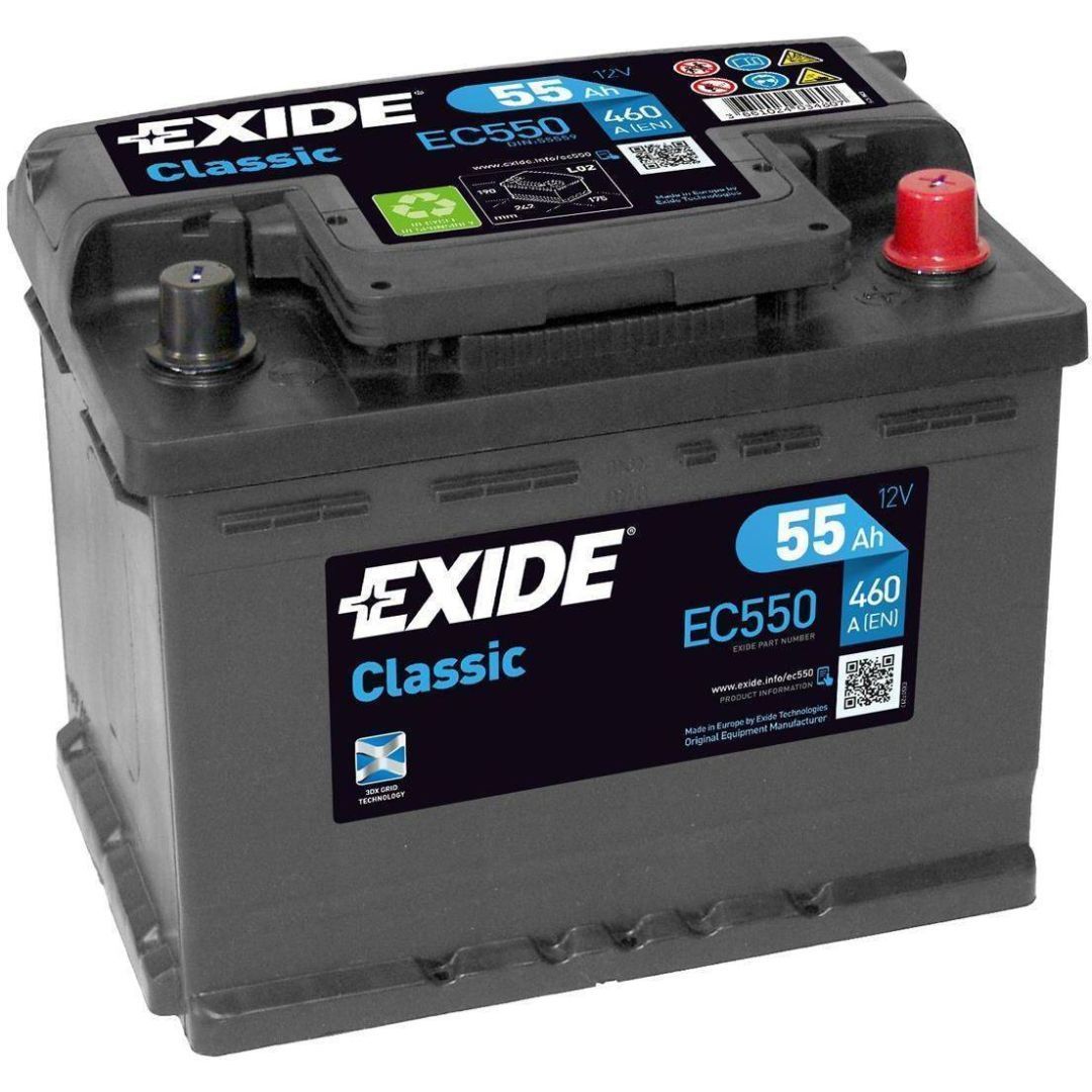 Exide käivitusaku Classic. Mahutuvus: 55 Ah. Käivitusvool: 460 A. Hooldevaba, väike veekulu ja isetühjenemine. Tsentraalne gaaside eraldussüsteem, mis vähendab aku plahvatusohtu. Sobib väikese töömahuga bensiinimootoriga autodele. Mõõtmed on 24,2 x 17,5 x 19 cm.