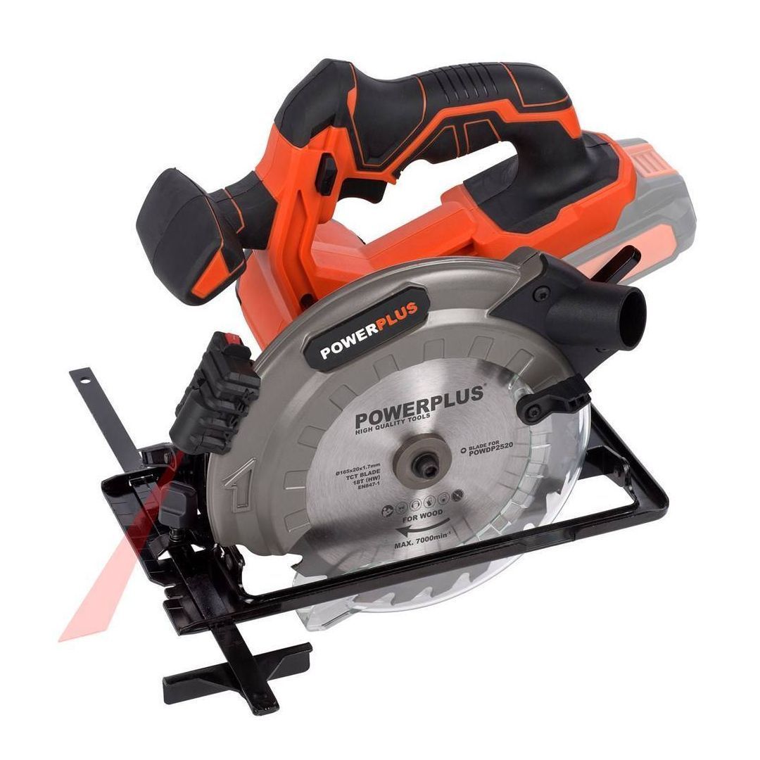 20 V akuketassaag POWDP2520 Powerplus sarjast Dual Power on ketta läbimõõduga 165 mm ning maksimaalse kiirusega 4000 pööret minutis. Ketassaega on võimalik lõigata sirgeid lõikeid kasutades juhtsiini abi või teha lõikeid nurga all vahemikus 0° kuni 45°. <br /><br />Lõikeketta sügavus on reguleeritav. POWDP2520 on võimeline lõikama kuni 55 mm sügavusele (45° nurga all kuni 36 mm). Integreeritud kõrge täpsusega laser garanteerib korrektsed, puhtad ja täpsed lõiked. LED valgustus valgustab töökoha. Akuketassaag on varustatud täiendava pehmendusega käepidemega ning tolmuimejaühendusega. <br /><br />Aku ja laadijata mudel. Akuketassaag ühildub Powerplus Dual Power laadijate ja akudega. Komplektis on ketassaag, hex võti, juhtsiin, lõikeketas puidule ning kasutusjuhend.