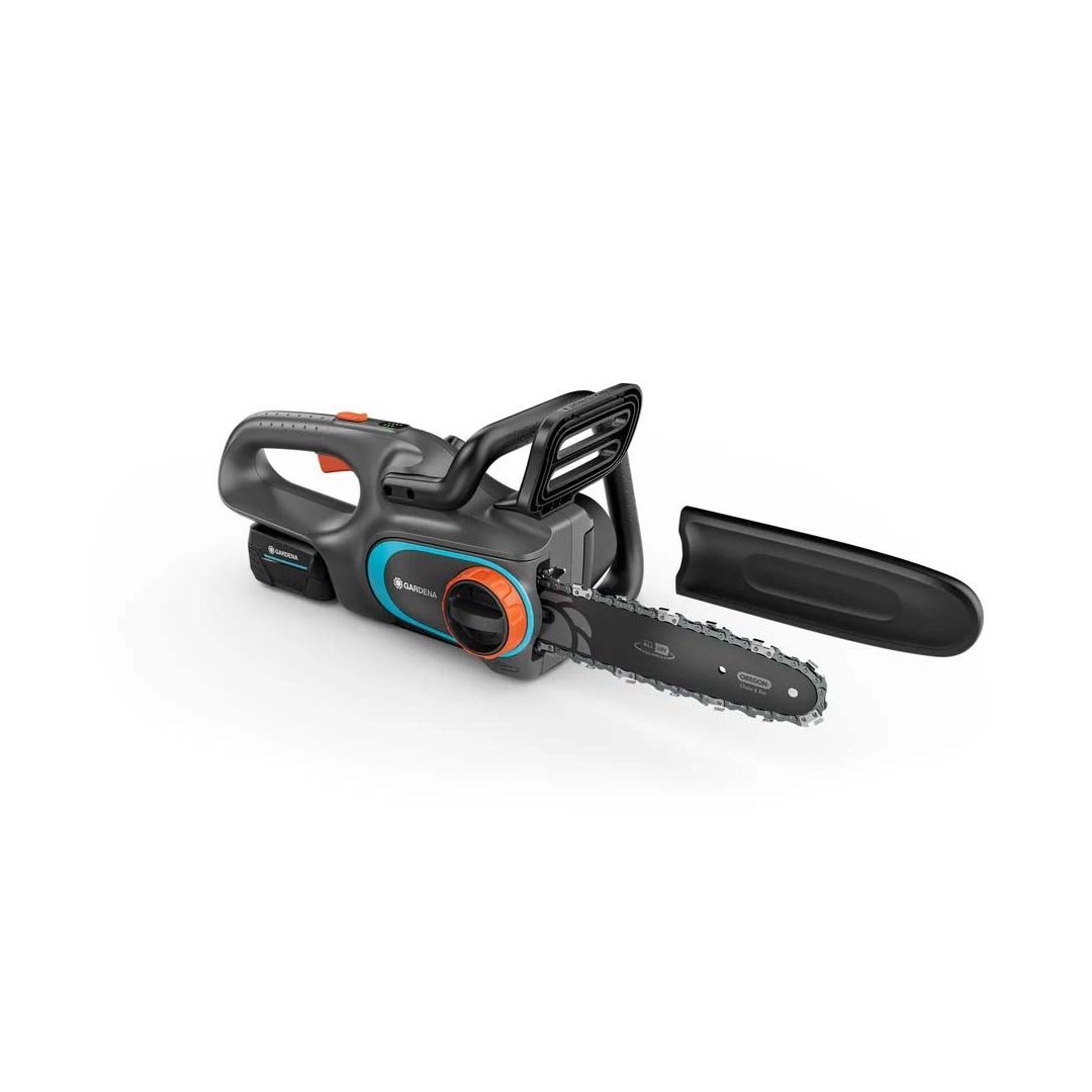 Võimas ja täpne: GARDENA 18V akumootorsaag pingutuseta aias lõikamiseks<br>Samm: 3/8" madal profiil. Mõõt: 1,1 mm (0,043 tolli) kitsas soon. Ideaalne puude hooldamiseks, küttepuude ettevalmistamiseks ja hobiaianduseks<br>Täpne, kuumtöödeldud poolmeislikett-duo lõikab sujuvalt suurema prahi tolerantsiga<br>Ketipidur ja ketipüüdur, et vältida vigastusi keti juhusliku purunemise korral<br>LubriTec õlitussüsteem hoiab teie keti ja juhtplaadi õlitatuna, et tagada väiksem hõõrdumine ja pikem kasutusiga<br>Komplektis: 1x GARDENA kettsae PowerSaw 250/18V kasutusvalmis komplekt, 1x süsteemiaku P4A PBA 18V/72, 1x laadija P4A AL 18V-20 CV<br>GARDENA akutoitega 18 V kettsaega saate võimsa ja täpse lõikega. See kompaktne kettsaag, mis on varustatud harjadeta mootori ja 18 V P4A akuga töötava Oregon® keti ja latiga, on ideaalne hobiaianduseks, puude hooldamiseks ja küttepuude lõikamiseks.<br><br>Võimsus ja täpsus teie kätes<br>Hea kettsaag vajab õiget võimsuse ja täpsuse kombinatsiooni ning sellel juhtmeta akutoitel kettsael on nutikad funktsioonid mõlema tagamiseks. Madala müratasemega akutoitel harjadeta mootor tagab 8 m/s ketikiiruse puude, palkide ja okste lühikeseks töötlemiseks ⅜ tollise keti ja 25 cm juhtplaadiga Oregon®ilt, mis on üks maailma usaldusväärsemaid kaubamärke alates 1947. aastast, mis on rahvusvaheliselt tuntud oma pikaealisuse ja töökindluse ning optimaalse lõikejõudluse poolest.<br>Muidugi ei piisa kvaliteetse puidutöötlemise tagamiseks ainult toorest võimsusest. See Oregoni® saekett sobib ideaalselt hobiaednikele, kes kasutavad GARDENA kettsae PowerSaw 250/18V. 1,1 mm (0,043 tolli) kitsa lõikegateraga lõikegasüsteem suurendab tõhusust, nõudes saelt vähem võimsust kui tavalised lõikegasüsteemid. Hobiaednikele mõeldud madala vibratsiooniga ja madala tagasilöögiga Chamfer Chisel saeketiga pakuvad silmapaistvat jõudlust. Sobib ka teistele mootorsaemudelitele, mis töötavad 3/8-tollise madala profiiliga sammuga, 1,1 mm (0,043 tolli) gabariidiga.<br><br>Lõikamine on mugav ja mugav<br>Tugevate käeshoitavate lõikeseadmete kasutamine võib olla vaevarikas, eriti suuremate tööde puhul. GARDENA kettsaag on ergonoomiliselt disainitud kasutaja mugavusi arvestades. Spetsiaalselt disainitud käepideme mitut lõikamisotstarvet silmas pidades alates aiatöödest ja puude hooldamisest kuni küttepuude ettevalmistamiseni. Vaid 3,8 kg kaaluv tööriist on vaatamata lõikejõule kerge. Ja kuna see kasutab akutoitel mootorit, pole bensiinimootoriga kettsaagidega seotud müra, heitgaase ega lõhna.<br><br>Loodud teie ohutust silmas pidades<br>Ohutu lõikamine on meie prioriteet. Seetõttu on GARDENA 18 V kettsaag täis intelligentseid ohutusfunktsioone, mis on üles ehitatud kõige levinumate õnnetuste ja vigastuste põhjuste ümber. Oregon® juhtplaadil on võimas ketipidur, et säilitada ohutus, kui lõikamine katkeb. ¾-tollist ketti toetab tugev metallist ketihoidja, mis hoiab ketti paljudel juhtudel paigal.<br><br>Minimaalne hooldus<br>See tööriist on loodud minimaalset hooldust silmas pidades. Tööriistadeta keti pingutamine tagab optimaalse lõikamise, ilma et oleks vaja ketile käsitsi pinget lisada. Harjadeta mootor on loodud pakkuma maksimaalset jõudlust pika aja jooksul minimaalse hooldusega. Veelgi enam, sisseehitatud LubriTeci automaatne õlitussüsteem pikendab teie keti eluiga, suunates õli keti põhiosadesse, et saaksite töötada vähemate seisakute ja hoolduspausideta. Tugev ja kauakestev kroomitud väliskiht tagab vastupidava ja terava lõikenurga ning karastatud needid aitavad vähendada kulumist ja võimaldavad keti vähem reguleerida.<br><br>Osa POWER FOR ALL 18V akuliidust<br>POWER FOR ALL ALLIANCE on üks suurimaid kaubamärkidevahelisi juhtivaid tootjate akuliite 11 kaubamärgi ja 100+ rakenduse jaoks. Aku ühildub paljude muude tööriistadega kodus ja aias – see tähendab, et te ei pea enam iga toote jaoks seda ostma. Säästate raha ja olete alati paindlik! TOIDE KÕIGILE Aku ja laadija ei kuulu komplekti. GARDENA pakub 3-aastast garantiid pärast registreerimist aadressil gardena.com/registration 3 kuu jooksul peale ostu sooritamist. Akud ja laadijad (kui seda müüakse koos tootega) on välistatud. Garantiitingimused aadressil gardena.com/warranty.<br><br>Kuni 180 lõiget (70x70 mm); Lõikelati pikkus 25 cm; Oregoni bar; Keti samm 3/8"; Metallist ketipüüdja; Metallist hambad; Keti kiirus 8 m/s; Õlipaagi maht 150 ml; 4,4 kg. Kaasa 18V/4,0 Ah aku ja laadija