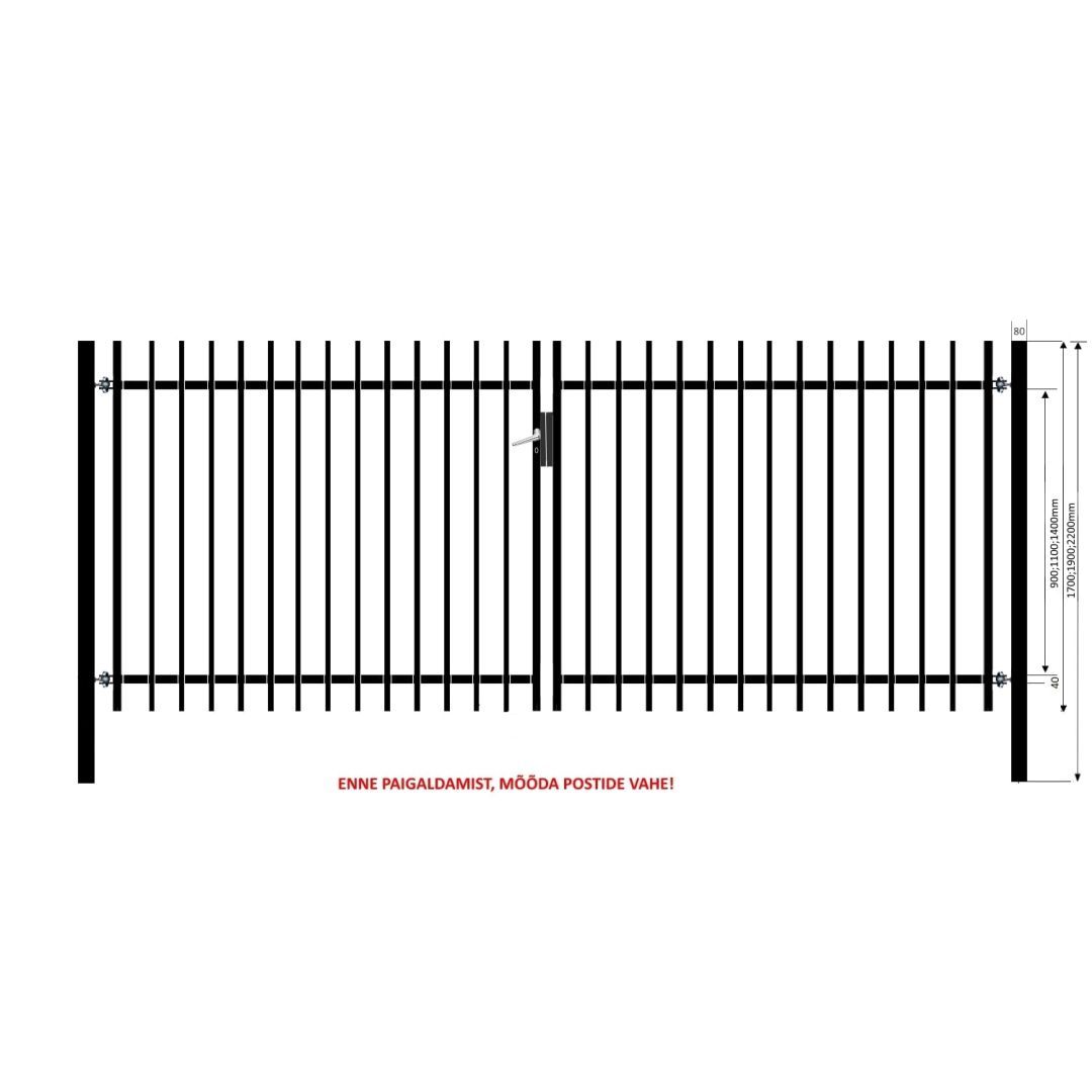 AUTOVÄRAV VARBAIALE 1,4X4M RAL9005 GTIN: 200007458235 Väravad ja piirded Autovärav varbaiale ~4 m. Pinnakate on tsingitud ja värvitud pulbervärviga RAL9005 must. Autovärava komplekt sisaldab kahte tiiba, ühe tiiva laius on 2 m. Väravat saab avada nii väljapoole kui sissepoole.<br><br /><br><br />Kõrgus: 1,4m<br><br />Värava postid on 70 cm kõrgem, kui värav<br><br />Pulbervärvitud RAL9005 must<br><br />Vertikaaldetailid 20 x 20 x 1,5mm<br><br />Horisontaaldetail 40 x 40 x 2mm<br><br />Vertikaalpulkade vahe 100mm<br><br />Värava postid 80 x 80 x 2mm<br><br />Komplekt sisaldab: postid, värav, hinged, lukk, käepide ja 1 tuuleriiv. (Lukk, hinged, käepide asuvad värava posti sees)<br><br />ENNE PAIGALDAMIST MÕÕTKE VÄRAVA POSTIDE VAHE ÄRA | 14 tp | 552,00 € | Poodi | |