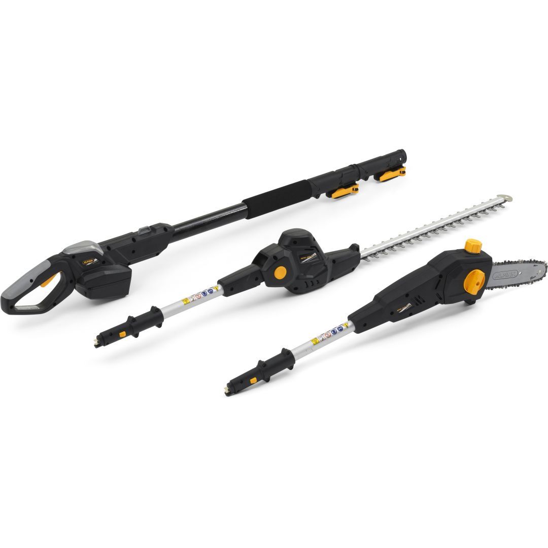 Alpina AMT 20 Li Kit on multifunktsionaalne, kasulik ja mitmekülgne akutoitega tööriist. See pakub kahte tööriista ühes - hekilõikur ja kettsaag. Tööriistal on 20 cm juhtplaat, mis võimaldab lõigata kõrgeimaid oksi ning 112° pööratav hekilõikur, mis jõuab hõlpsalt iga haru juurde. Tööriistal on teleskoopvars, mis võimaldab vart pikendada 55 cm võrra. Komplektis on aku ja akulaadija.