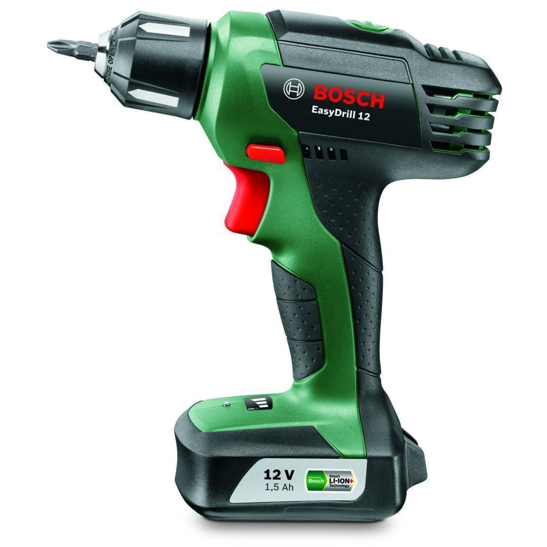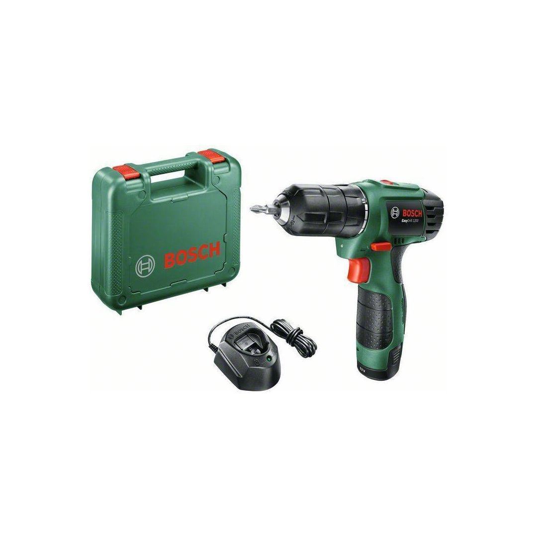Bosch EasyDrill 1200 on 12V kahekäiguline liitium-ioonakuga trell-kruvikeeraja kruvikeeramiseks ja puurimiseks. Väike, tugev ja võimas! <br /><br />EasyDrill 1200 on varustatud Syneon Chip tehnoloogiaga - võimsuse nutikas juhtimine, mis tagab parima jõu ja maksimaalse vastupidavuse. Tänu liitiumioontehnoloogiale akutrellil mäluefekti ja iseeneslikku tühjenemist ei esine ning tööriistal on kompaktne konstruktsioon. <br /><br />• Boschi elektroonika pöörlemiskiiruse seadmine: lülitiga saab «gaasi anda» nullist maksimumini<br />• Suure jõudlusega planetaarülekanne: pikk tööiga, parim jõuülekanne, sujuv töö<br />• PowerLight – tänu sisseehitatud valgusdioodile on töödeldav toorik alati hästi nähtav<br />• Saab valida 15 pöördemomendi-astme vahel ja puurimisrežiimi – optimaalne jõud iga rakenduse jaoks<br /><br />Akutrellil on kahekäiguline reduktor, pehmendusega käepide, integreeritud valgustus, pöörlemissuuna indikaator ning päri- ja vastupäeva käigud. Akuelemendid on täiustatud Bosch Cell Protection (ECP) akuelementide kaitsega. <br /><br />• Aku mahtuvus: 1,5 Ah<br />• Tühikäigu pöörlemiskiirus (1. käik/2. käik): 0 – 450 / 1650 p/min<br />• Maksimaalne pöördemoment, pehme/kõva kruvikeeramine: 11 / 20 Nm<br />• Pöördemomendi astmed: 15 + 1<br />• Tarvikukinnitus: Kiirkinnituspadrun<br />• Kruvi Ø kuni: 6 mm<br />• Puuri Ø terases: 6 mm<br />• Puuri Ø puidus: 20 mm<br /><br />Komplekti kuuluvad laadimisseade, 2 akukomplekti 12V 1,5Ah, kahepoolne kruvikeeramisotsak ning kandekohver.