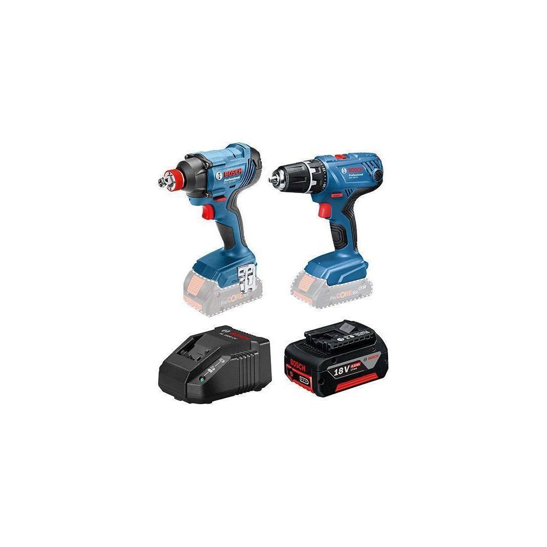 Bosch akutööriistade komplekt kuhu kuulub akulöökmutrikeerajat GDX 18V-180 ja akukruvikeerajat GSR 18V-21. Standardvarustuses on 2 x 4,0 Ah li-ion akut, laadija ja L boxx kohver. Aku laadimisaeg on 0,7 tundi.<br /><br />Komplektis olev <b>akulöökmutrikeeraja GDX 18V-180</b> on võimas mitmeotstarbeline tööriist võimsa pöördemomendi ja löögiga. Akulöömutrikeeraja aku pinge on 18 V, maksimaalne pöördemoment 180 Nm, löökide arv 0-3600 l/min ja tühikäigupöörded 0-2800 p/min. Tööriistal on unikaalne otsik, mis sisaldab endas nii 1/2" välisnelikanti kui ka 1/4" sisekuuskanti.<br /><br />Komplektis olev <b>akukruvikeerajat GSR 18V-21</b> on mugav ja käepärane tööriist igapäevaseks kasutamiseks. Akukruvikeeraja aku pinge on 18 V, pöördemoment (pehme/kõva) 21/55 Nm, tühikäigupöörded (1. käik/2. käik) 0-480/0-1800 p/min. Puuri maksimaalne Ø puidus on 35 mm ja terases 10 mm.