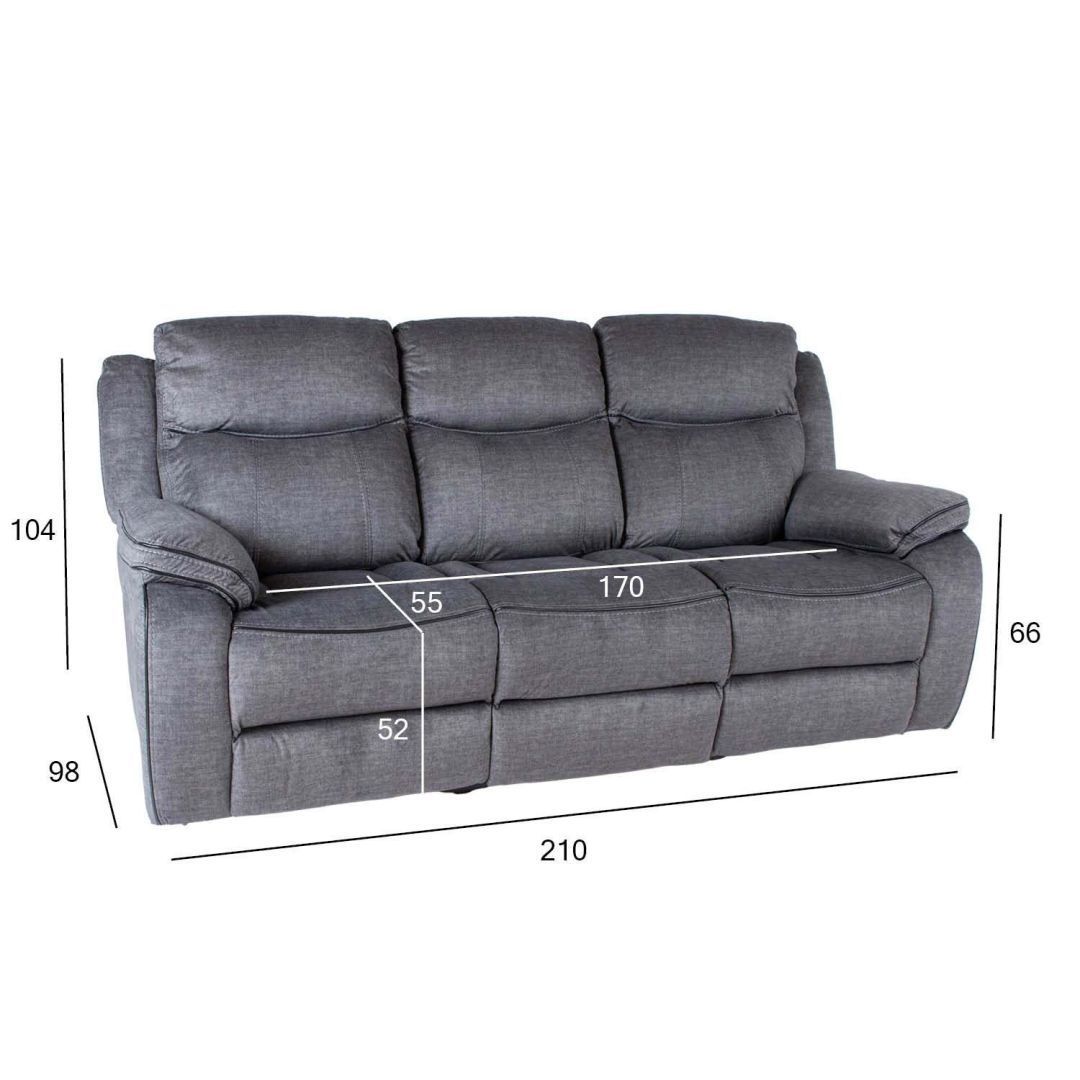 Diivan GENTRY 3-kohaline manuaalne recliner, hall. Recliner tüüpi diivani jalatoe asendit on võimalik muuta manuaalse mehhanismi abil. Jalatuge üles tõstes liigub seljatugi sujuvalt kaasa. Jalatoe tõstmiseks tõmmake tooli paremal välisküljel asuv kang üles. Surudes jalatuge alla fikseerub see automaatselt algasendisse. Kattematerjal: 100% polüesterkangas. Karkass ja vedrustus: vineer, puit, metall. Polsterdus: polüuretaanvaht 24-30kg/m³. Diivani üldmõõdud on 210x98xH104cm. Istme laius 170cm, istme sügavus 55cm, istme kõrgus 52cm. Käetoe kõrgus maast 66cm, käetoe laius 26cm.