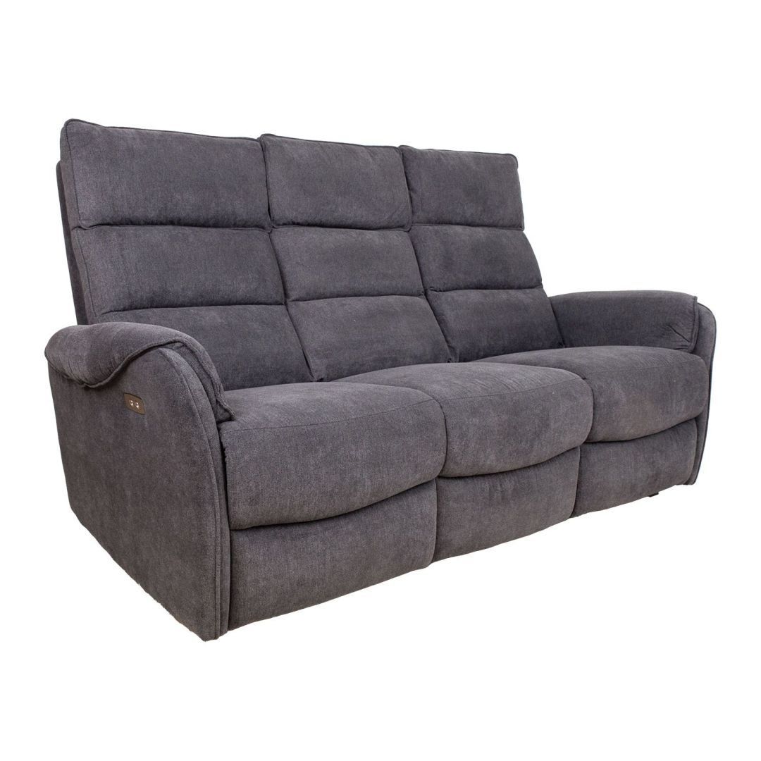 Diivan BOWERS 3-kohaline elektriline recliner, sinakashall. <br />Recliner tüüpi diivani äärmiste istmete jalatoe asendit on võimalik muuta elektrilise mehhanismi abil. Jalatuge üles tõstes liigub seljatugi sujuvalt kaasa. <br />Kattematerjal: 100% polüesterkangas, Martindale 15 000. <br />Karkass: puit, vineer ja metall. Polsterdus: polüuretaanvaht. <br />Diivani üldmõõdud on 187x98xH109cm. Istmelaius 150cm, istme sügavus 50cm, istme kõrgus 46cm. Käetoe kõrgus maast 62cm.
