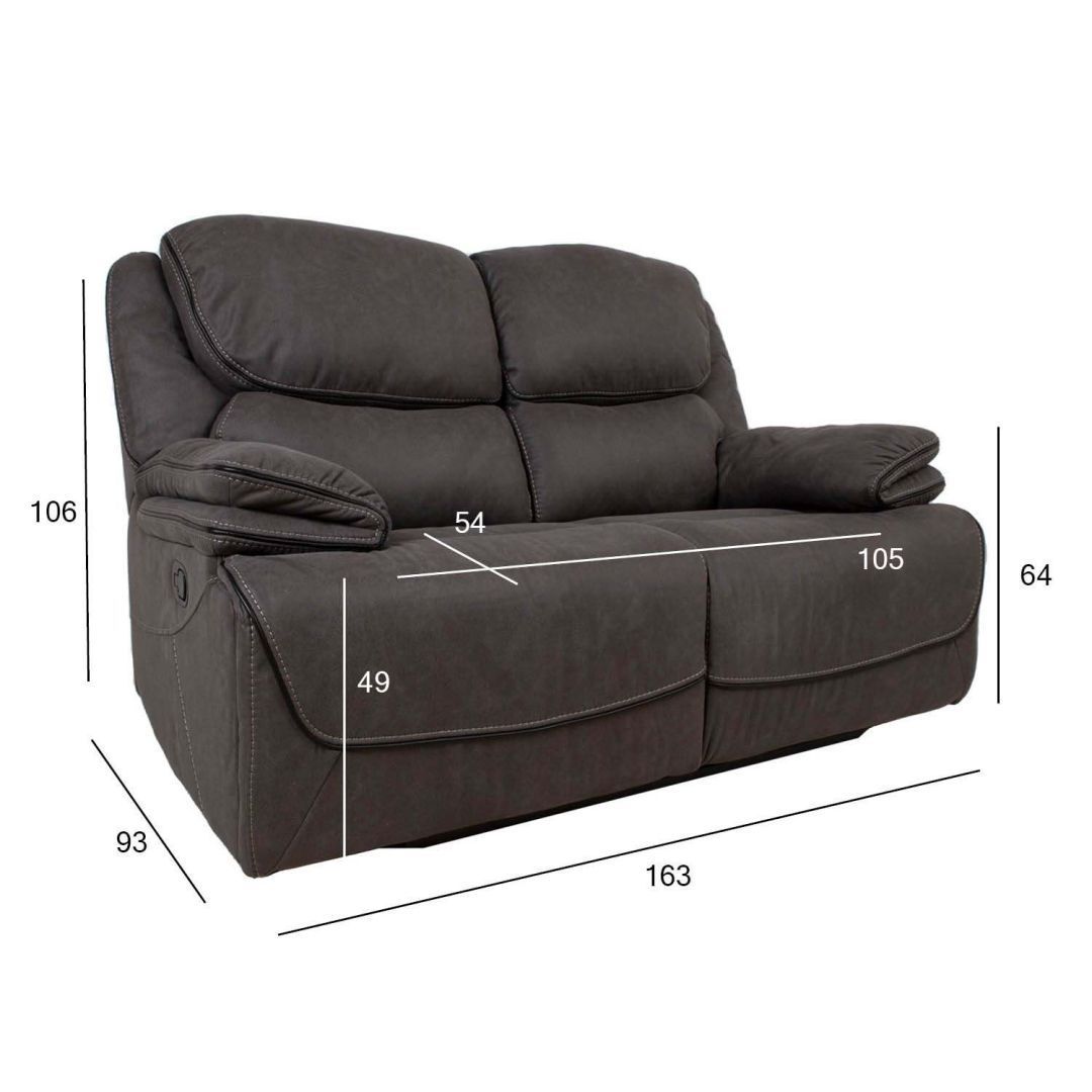 Diivan GORDY 2-kohaline manuaalne recliner 163x93xH106cm, hall. Recliner tüüpi diivani jalatoe asendit on võimalik muuta manuaalse mehhanismi abil. Jalatuge üles tõstes liigub seljatugi sujuvalt kaasa. Jalatoe tõstmiseks tõmmake tooli paremal välisküljel asuv kang üles. Surudes jalatuge alla fikseerub see automaatselt algasendisse. Kattematerjal: kunstnahka meenutav pehme polüesterkangas. Karkass ja vedrustus: vineer, puit, metall. Pocket vedrud. Polsterdus: polüuretaanvaht 20-28kg/m³. Diivani üldmõõdud on 163x93xH106cm. Istme laius 105cm, istme sügavus 54cm, istme kõrgus 49cm. Seljatoe kõrgus 69cm. Käetoe kõrgus maast 64cm.