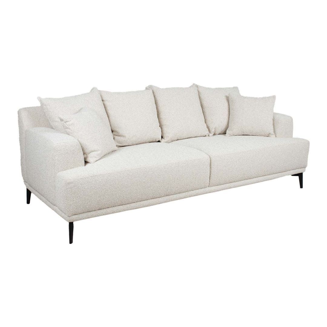 Diivan MAGNOLIA 3-kohaline, helebeež. Luksuslik, efektse kangaga kaetud hele diivan on tõeline pilgupüüdja. Lahtised seljatoepadjad mõjuvad kutsuvalt ja pakuvad suurepärast mugavust. Diivani karkass on valmistatud männipuidust. Iste on polsterdatud kvaliteetse polüuretaanvahuga. Istmepõhjale annavad vajaliku toe ja elastsuse kvaliteetsed terasest sik-sak vedrud. Lahtised seljatoepadjad on täidetud mahulise polüesterkiuga. Seljatoepatjade mõõdud on 54x54cm / 4tk ja 42x42cm / 2tk. Diivan on üleni kaetud vastupidava, jämedakoelise struktuuriga polüesterkangaga. Diivani üldmõõdud on 220x96xH76cm. Istme laius 175cm, istme sügavus 60/75cm, istme kõrgus 45cm. Käetoe kõrgus maast 63cm, käetoe laius 18cm. Diivanil on mustad metallist jalad H15cm.