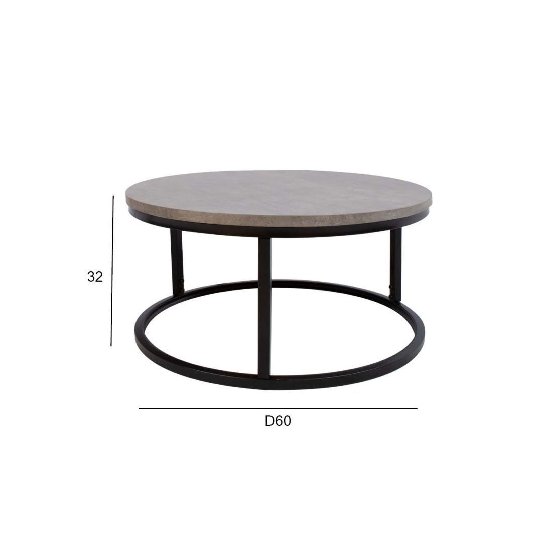 Diivanilaud BRITU D80xH35cm, hall. <br />Lauaplaat: MDF betooni meenutava dekooriga, lauaplaadi paksus 18mm. <br />Laua raam ja jalad on valmistatud metallist ja viimistletud musta pulbervärviga.