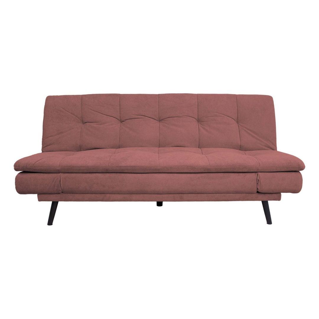 Diivanvoodi ROXY roosa. Diivani kattematerjal: 100% polüesterkangas. Karkass ja vedrustus: puit, vineer, siksak vedrustus. Polsterdus: polüuretaanvaht. Jalad on valmistatud metallist. Diivanil on click-clack mehhanism, mille abil on lihtne muuta diivan magamisasemeks. Diivani üldmõõdud on 189x88xH91cm. Diivanvoodi mõõdud avatuna on 189x113xH48cm.