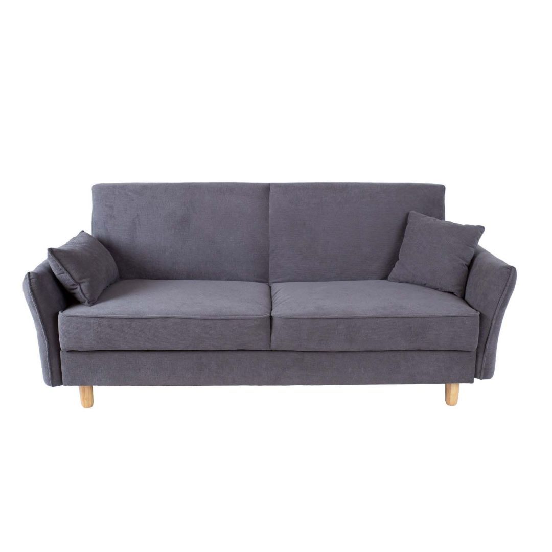 Diivanvoodi KARIN 208x80x80cm, hall. Diivani kattematerjal: 100% polüesterkangas. Karkass ja vedrustus: puit, vineer, MDF, siksak vedrustus. Diivani polstris on kasutatud taaskasutatud porolooni. Diivanil on click-clack mehhanism, mille abil on lihtne muuta diivan magamisasemeks. Diivani üldmõõdud on 208x80xH80cm. Diivanvoodi mõõdud avatuna on 187x105xH41cm. Diivanil on heledad puidust jalad.