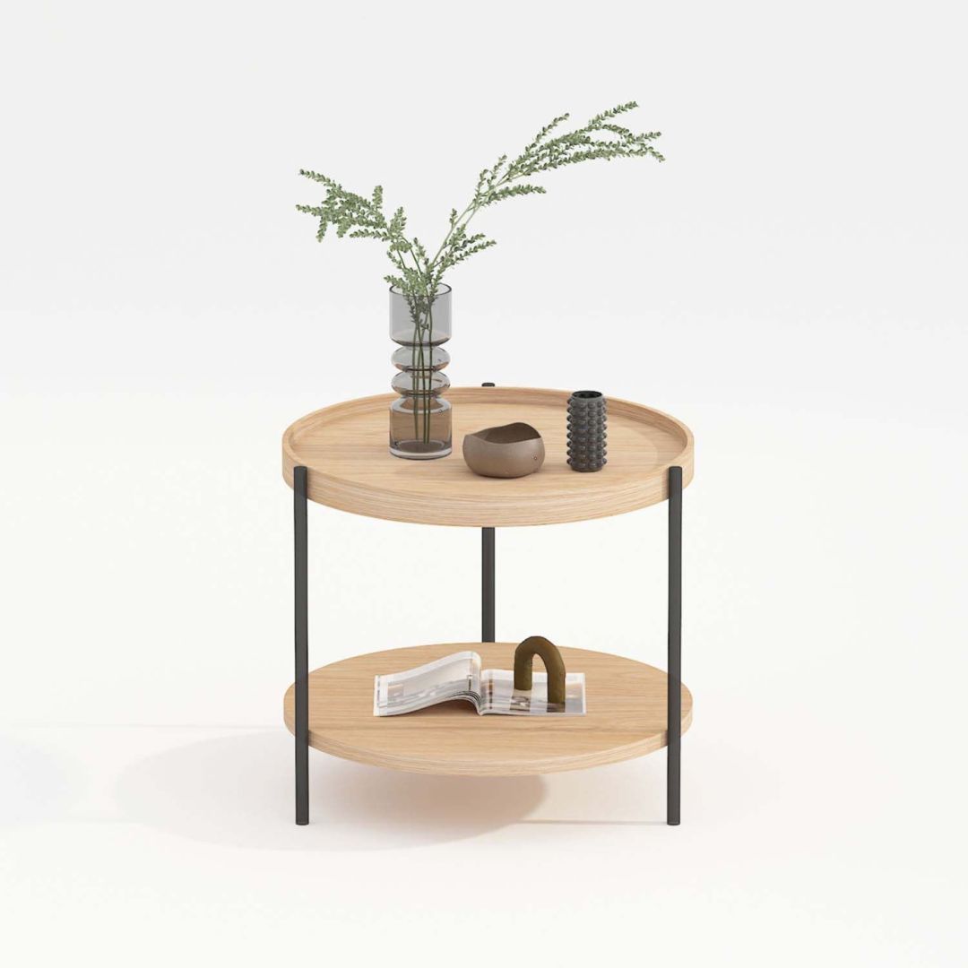 Diivanilaud MUSIC 2tk komplektis D60xH38, D90xH46, tamm. Lauaplaat ja äär on valmistatud tammevineerist. Laua must terasest jalg on emailviimistlusega.