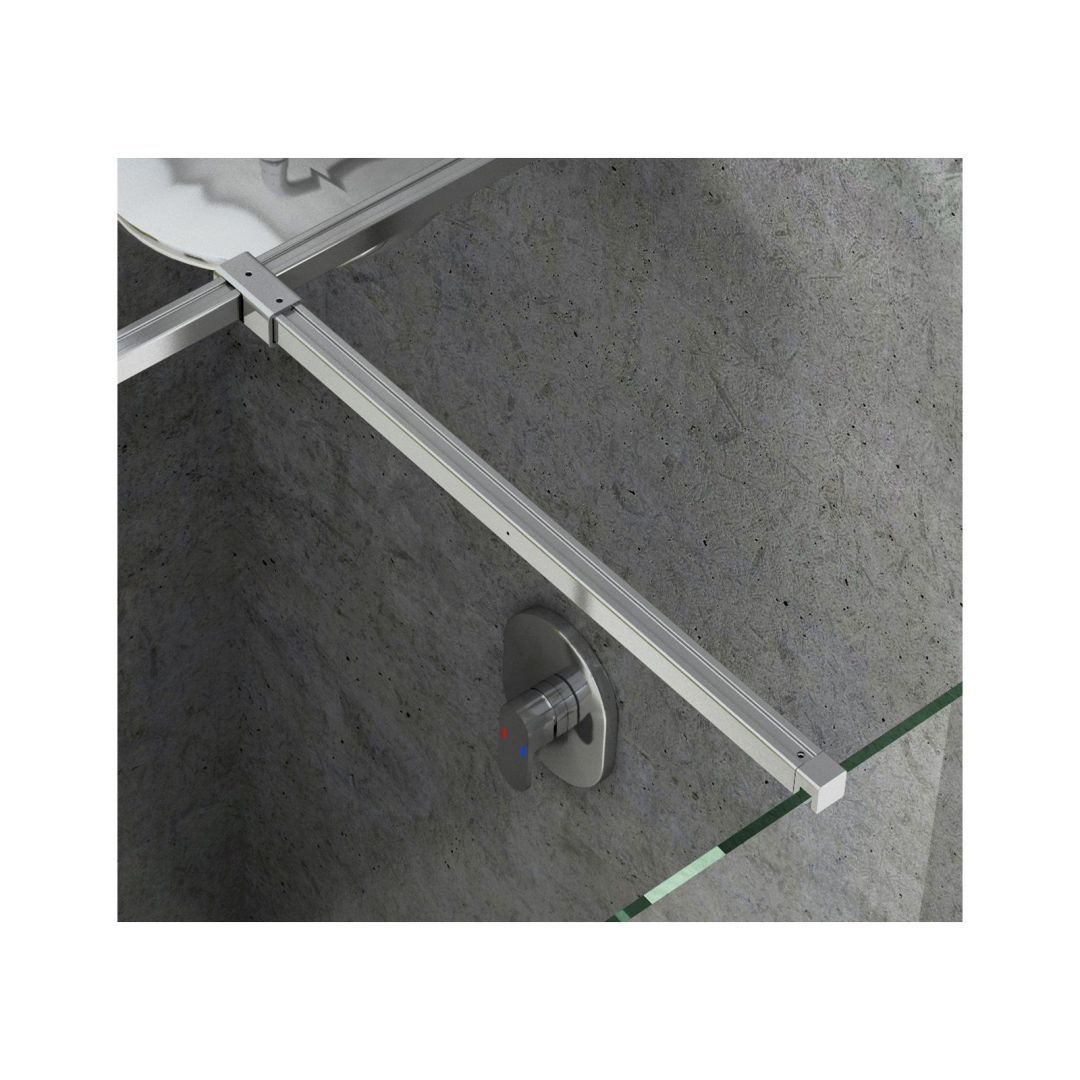 Ülemised hoidjad ja alumised kinnitused hoiavad kindlalt Walk-In Double Wall dušinurga külgseina ja tagavad kogu nurga stabiilsuse. Hoidja pikkus on 1200 mm ja seda saab vajadusel lühendada. Hoidja W SET-Uni T pikkus määrab dušiala sissepääsu laiuse.<br><br>Metallidetallide komplekt dušikabiinile Walk-In Double Wall. Ühendav fiksaator on 1200 mm pikkune ja määrab sissepääsu laiuse. Seda saab soovi korral lühendada.<br>W SET-Uni T-ühendus sisaldab:<br>- metallist fiksaator – 1 tk;<br>- T-ühendus – 1 tk;<br>- klaasihoidik – 1 tk;<br>- klaasitugi – 1 tk;<br>- montaažikomplekt.<br>Dušikabiini stabiilsuse tagavad tugi ja metallist ühendav fiksaator, millel on läikiv (bright alu) pinnatöötlus.