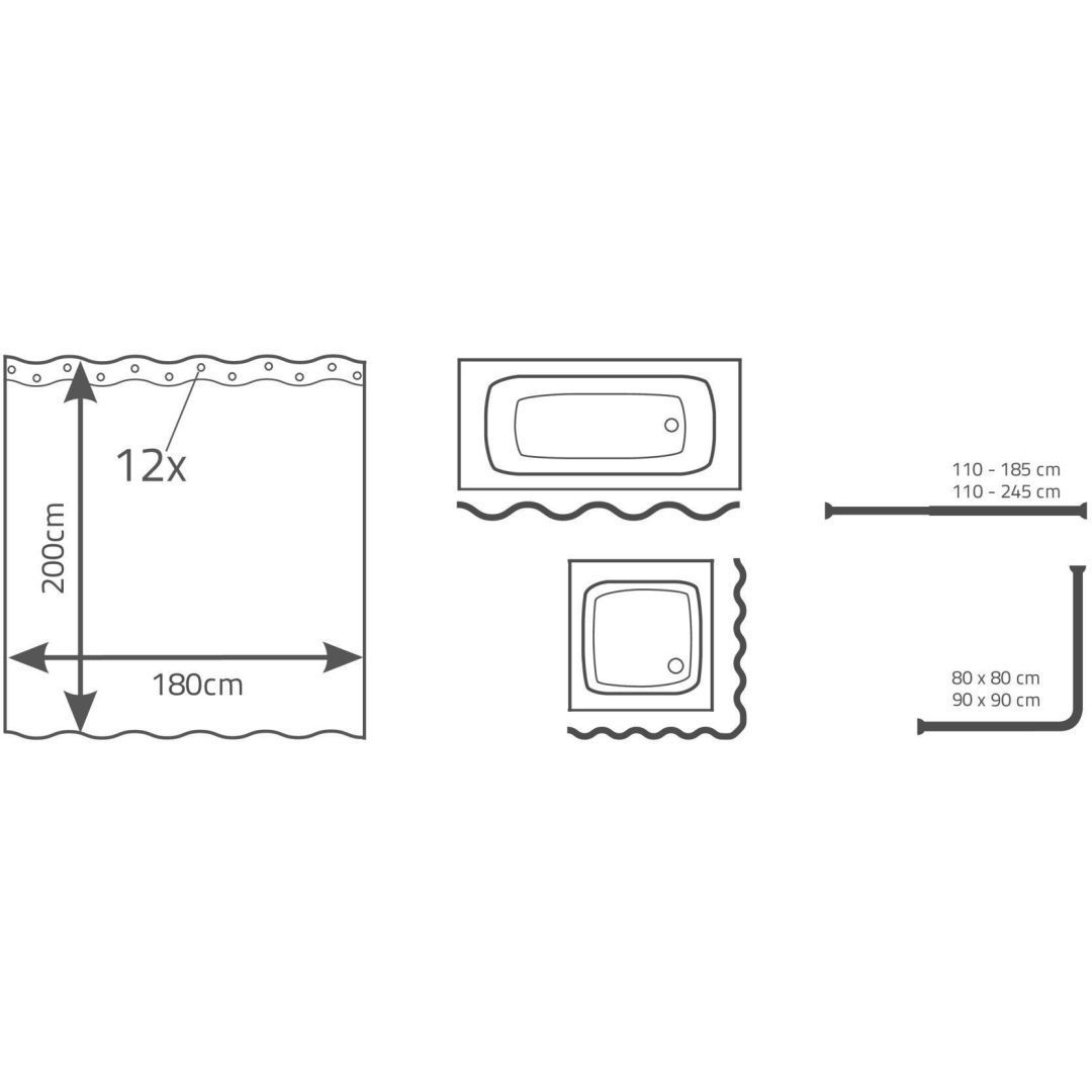 MSV duši- ja vannikardin mõõtmetega 180 x 200 cm. Valmistatud 100% PEVA materjalist. Kardinarõngad 12 tk kuuluvad komplekti. Puhastamiseks sobib käsipesu.