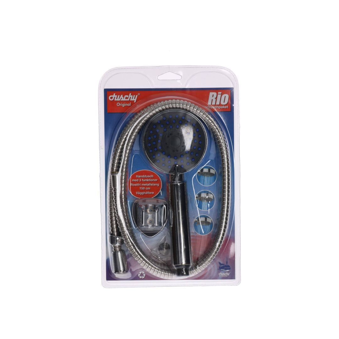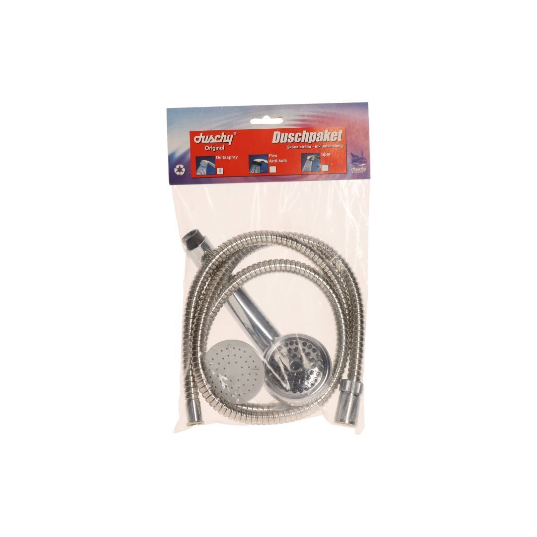Dušikomplekt: voolik/dušiotsik/lühem hoidik <br>Kõik koos, üks ost, mis lahendab kõik. Dušivoolik, käsiduši otsik ja liigutatav dušihoidik moodustavad harmoonilise terviku, mis tänu kõrgele kvaliteedile teenib teid kaua aastaid.<br><br>Mõõtmed: vastupidavast plastikust voolik 150 cm, kolme funktsiooniga dušiotsik diameetriga 118 mm, liigutatav dušihoidik 63,5 cm. Sobib: vannile, dušile, süvistatavale segistile, termostaatilistele segistitele. Välispinna puhastamiseks soovitame kasutada RAVAK Cleaner Chrome puhastusvahendit.