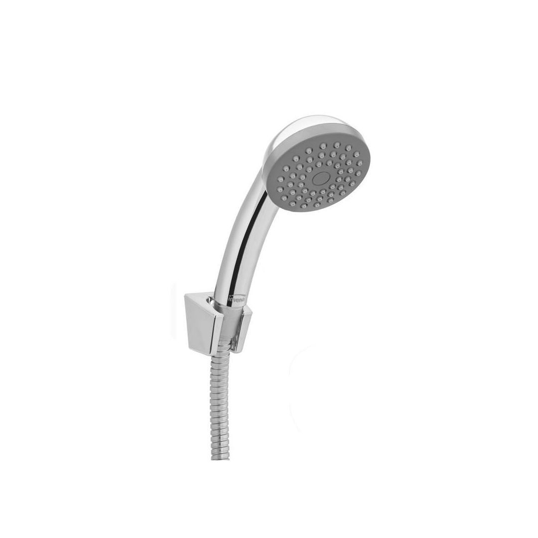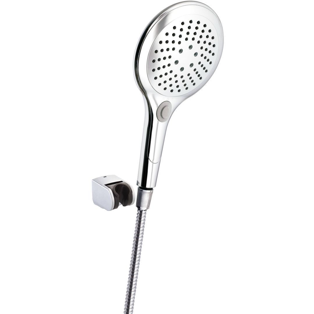 Kõik vajalik ühes komplektis maksimaalseks mugavuseks duši all. Luksuslik dušikomplekt kroomi kujundusega sisaldab valget kolme režiimiga dušiotsikut ja vastupidavast plastikust voolikut. Käsiduši hoidja on varustatud spetsiaalse liikuva mehhanismiga, mida on mugav kasutada vaid ühe käega. Seega välditakse ebameeldivaid ja ebapraktilisi toiminguid duši all.<br><br>Dušihoidik: 70 cm, liigutatav OneHand süsteemiga, kroomitud <br>Dušivoolik: 150 cm vastupidavast plastist <br>Käeshoitav dušiotsik: läbimõõt 120 mm, valgest ABS-plastist, 3 režiimi - "Joavool", "Vihm", "Joavool + Vihm" <br>Sobib: kõigile vannitoa segistitele, dušisegistitele, peidetud paigaldusega ja termostaatilistele segistitele RAVAK <br>Luksuslik dušikomplekt Chrome disainis, valge värske dušiotsikuga ja kolme režiimiga, mis rahuldavad kõige nõudlikumaid eelistusi.