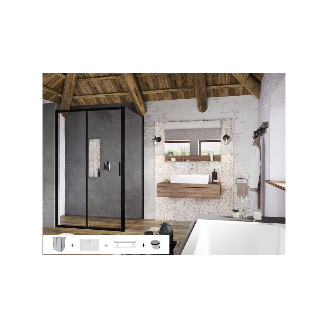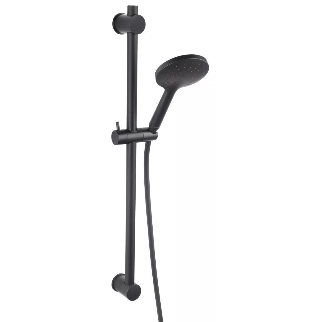 Dušisüsteem on varustatud Auto Clean süsteemiga, mis tagab automaatse katlakivi eemaldamise dušipea pihustitest. Ülemise hoidiku kinnitusvahe on reguleeritav. Komplektis on 730 mm pikkune libisev metallist vars ning ühe funktsiooniga vihmasadu dušipea. Dušivoolik on 150 cm pikkune, valmistatud PVC-st ja varustatud koonilise otsikuga. Värv: must.